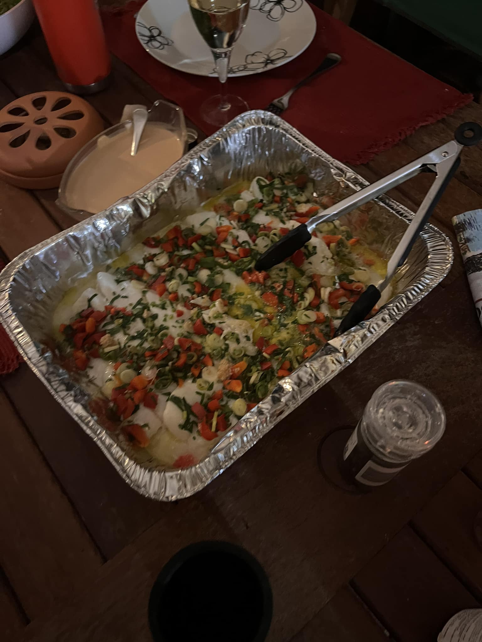 Being Friday it was fish for dinner as we settled in under some grey skies