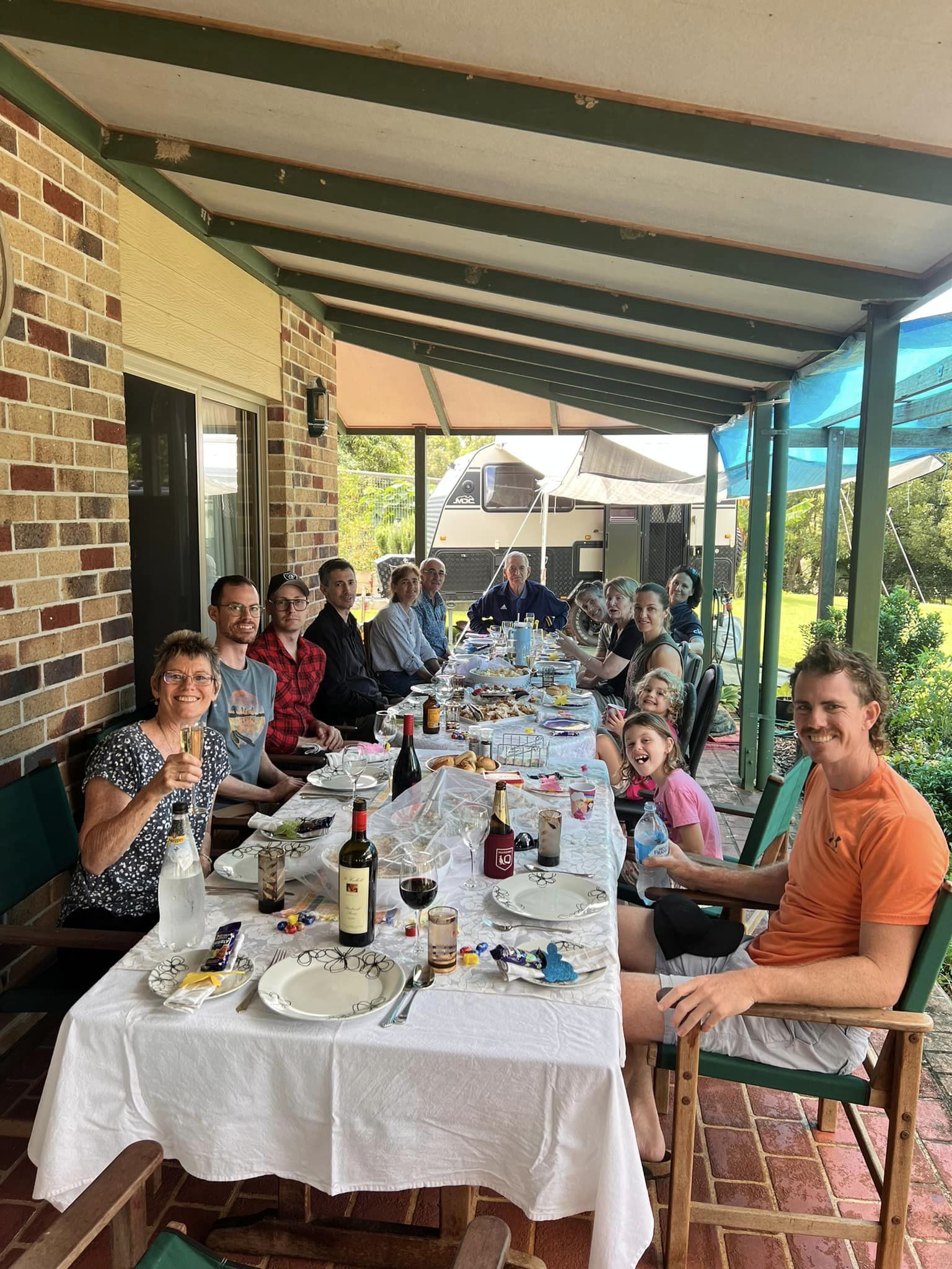 All the gang was here including ADJG who were camping in the Garage – you snooze you lose 🤓 A lovely lunch accompanied by several bottles of the grape stuff as the weather still held. It was also doubling as a 40th Birthday celebration for BC 1 which can only mean one thing. CLP is a lot older than I realised🕺🏻