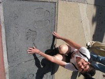 Flew in late one night from NYC and we were staying at Hilton Universal City so had investigated shuttle buses and their appeared to be some suitable alternatives. However methinks there may be some money changing hands as it was very difficult to line up the shuttle we wanted with the supposed “hired help” Due to time of night we took the sensible though expensive option of a taxi. It was a nice drive through LA at nightime but when the head hit the pillow it was time for rest. We woke up next day to a bright sunny day and time to check out some glitz and glamour. Off to Hollywood Boulevard and check out some famous footprints and equally famous breasts.