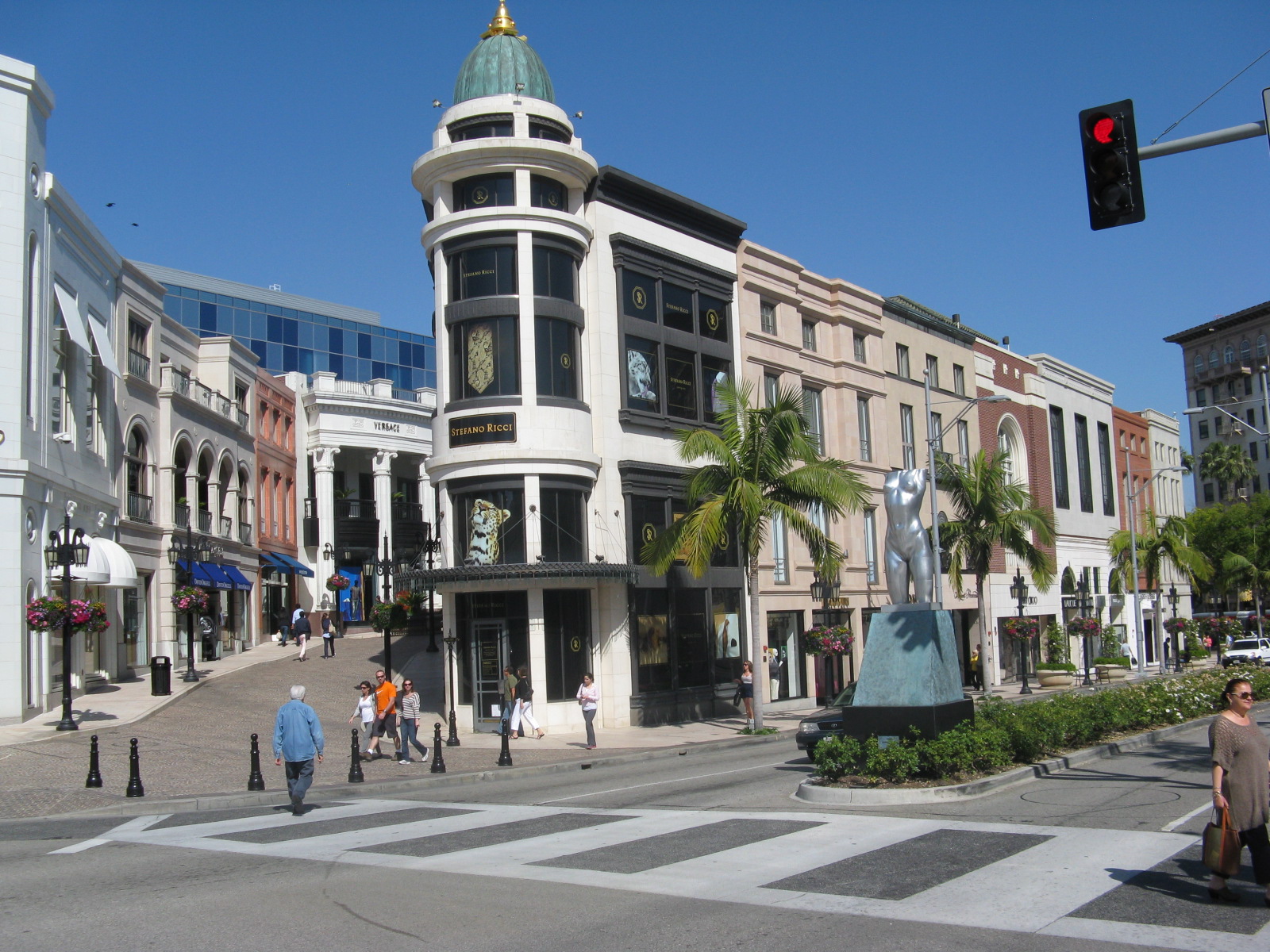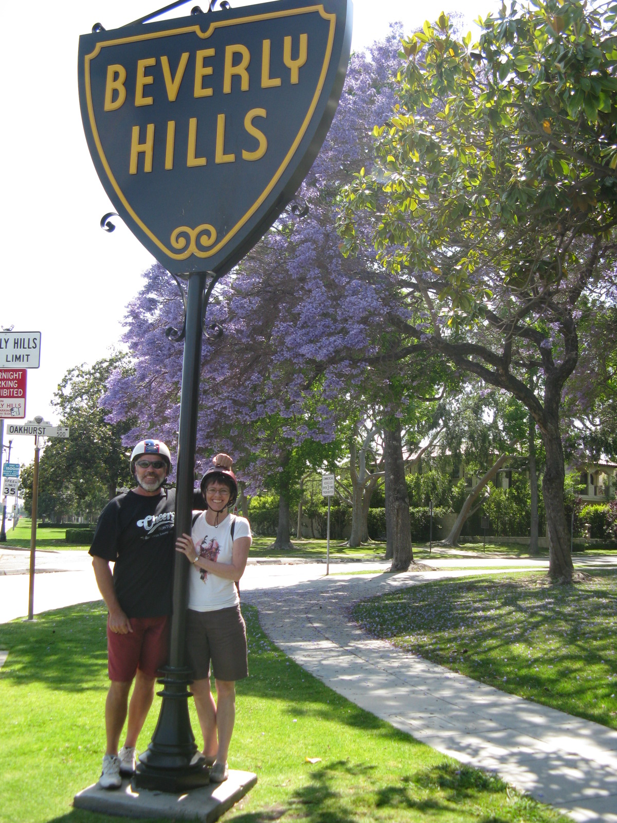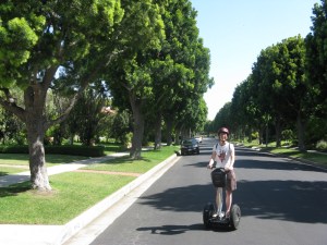 We had a segway tour booked for later in the day around Beverly Hills. These Segways are pretty easy to move around on once you get the hang of them but the tirck is to speed up you have to lean forward; to slow down you lean back. Simple Pimple really – but we went along a lot of sidewalks and crossed streets and back up the sloped culvets onto the sidewalk. I found it very difficult to lean forward while going uphill so nearly fell off a few times trying to travel 0.3 m up a 10 degree incline. Not pretty. What was pretty though was zooming along quiet back streets of LA checking out some famous houses- none more famous than the one shared by MM and the Yankee Clipper – and then onto Rodeo Drive. Once again glorious weather.