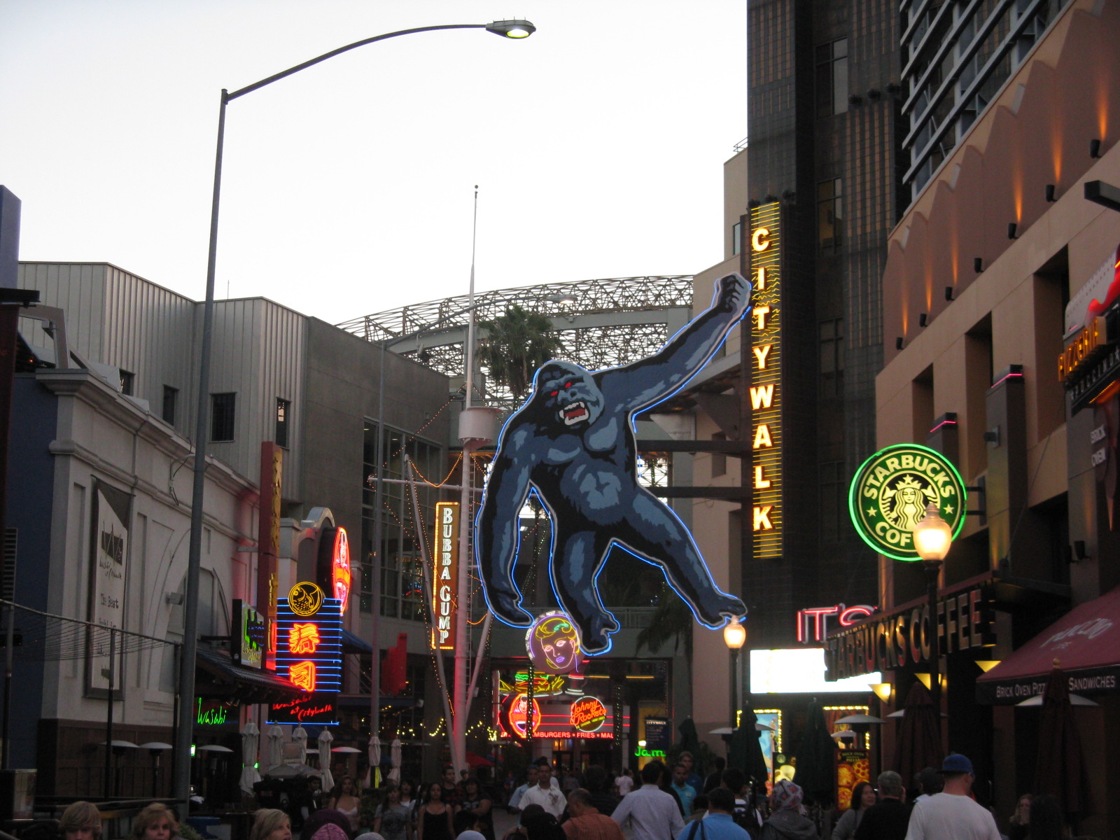 Then we had the problem of getting back to the Hilton Universal as the sun was setting. Another taxi through some peak hour traffic got us back just in time as the sun was setting and we had a quick stroll through Universal City walk barely taking time to reflect on how much we had done and seen in our first day – LA is that sorta town I guess. There was not time to hang around though even if pictures may suggest otherwise. It was a glorious night and was hard to walk away but we knew we would be back tomorrow. USA, the land of contrast, had thrown up another.