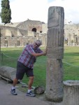 Our first organised tour for the trip saw us being picked up from our lodgings at 0700 in an 8 seater – being Rome of course they wanted to put 9 people in it. Hope the woman sitting on my lap got a thrill. Onto the big bus at Rome Termini and it was clean and reasonably comfortable . I always scan the likely suspects to see who will likely be trouble and no surprises that my pick of the middle aged Asian woman proved right at the first rest stop. Let me just say I am in constant awe of these bus drivers who manoeuvre these babies through narrow streets . Ours was equally up to the task. An hour after heading south we had our first well oiled 20 minute break where you have a coffee and a croissant and a pee – best in that order. There are obviously a few places like this dotted across the landscape that cater for bus tours as they have massive car parks and always several bus loads at any one time. As nominated said lady kept everyone waiting a further 5 minutes. Back on bus and into Naples. A poor man’s Monte Carlo ? Maybe they just pay taxes. It was a glorious day and you can’t go wrong with a large Bay and Mt Vesuvius dominating in background but it was pretty dull drive through town. The ability to stretch legs for 5 was great though. Onto a Cameo making factory , once again set up for bus tours , before heading to new Pompeii for lunch- apparently the restaurant guide did not recommend old Pompeii! Once again very well organised and the food was great. Only one thing worse than loud American tourists and that is quite American tourist . Young couple at our table, civilian contractors for US army in Kuwait and to be fair the lady was not unattractive. They were from Georgia but it was no peach of a time folks – like pulling teeth only less fun. He even said ” yes ma’am” to CLP once. Lovely people no doubt but dull dull dull. A quick souvenir hunt followed by the usual tip off where I got 3 coins as my 3 € change but if course he slipped me 50c ones not full € and I was in hurry to get out. Am sure it is his usual shtick for tourists and would catch most. Then it was onto the 2 hour walk around the old ruins with our tour guide