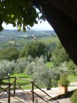 What a magic day. Woke up to beautiful weather for a relaxing stroll to our meeting point about 20 minutes along the river. As usual we were about 30 minutes early for the 10 am start time but the rest of the gang were there as well. – except 2 ! Now these are small escorted wine tours for maximum of 8 plus the host. The other 4 people there were great and we were talking easily but as it passed 10 am expected the late comers to arrive and be a nuisance all day. They didn’t show and we left at 1010 – with extra room in the van! Knob kiss. Ilaria our hostess was fantastic with that winning combination of knowledge, charm and wit. I would need to check her birth certificate to confirm she was actually Italian! The drive up through the hills was great even on the ridiculously narrow roads. After about 45 minutes we stopped for our first wine tasting . The wine villas in Tuscanny are exactly what you expect – magnificent structures set amongst a jaw dropping scenery. We had a tour of the rather small winery before sampling 3 reds – no surprises the most expensive tasted the best. Then onto Panzano for lunch with the Mad Butcher. Very interesting place and lunch was basically more meat then you could poke a stick at – and I did poke mine because some of it was raw! Great group we had to socialise with so all too quickly the day was passing. Then it was onto a larger vineyard and even more stunning villa. Another tour and another 4 wines to taste – and chocolates. At both places we also got to sample some great olive oil. Our final stop on way home was in Greve for a Gelato and then back into Florence where we asked to be dropped off at the Palazzo de Michealangelo or something like that which had yet another, though slightly different, stunning vista of Florence, just on sunset. Judging by the hordes this was a well know fact!