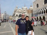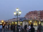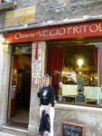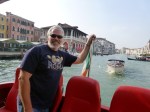 We caught another train from Florence this morning to Venice for an 8 hour layover before the night train to Paris. It was a smooth trip and all went well and arrived on time in Venice. First joy was leaving 4 bags of luggage in storage for the 8 hours and with the 20 kg limit things were looking a little dire but for once the Italian service guy simply gave us a knowing smile. Then out into the masses on a rather warm and humid day. First impressions were not good. It seemed dirty and over crowded. We had organised tickets for the Vaporetta Dell’arte but of course first had to line up to actually redeem the tickets for online reservation. We then lined up with the tourists and wondered why we had paid €25 each to be jammed into a boat that would,look fine shipping live cattle to the abattoirs. It was a slow boat but not to China – we mad every stop along the way until we hit San Marco – and then it got really crowded. It was impressive though and we then used our iPad rather well with the GPS to find a recommended little restaurant down a few back alleys and across a few bridges. It was the Veccio Fritolin and it was a superb seafood place with simply the friendliest waiter we had seen in all of Italy. From there the day improved considerably. A little bit of souvenir purchasing before some investigation into the 2 levels of Vaporetta that operate on the Grand Canal – cattle class and the actual Dell’Arte that we had paid for but only stop s at some points and is much more relaxing on board.,we hopped on this one at last and simply went up and down the canal over the next 90 minutes as the sun started to set. Beautiful. Then we hopped off near the train station for one last beer and watched as the sun set and the lightest started to shine
