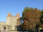 Left Perpignan nice and early for first day of driving. Booteeful morning and no real problems getting out of town and onto highway. The tolls work fine if a bit expensive but the roads are great and motor along at 130 . First stop was Carcassone and by now the blue sky was providing a stunning backdrop. Did have a hiccup or two with driving in the city and of course when panic sets in I hit the windscreen wipers rather than indicator as on the usual side for Aussies. It is a manual as well which adds to stress at times. Anyway found the parking space and walked to walled La Cite which was quite impressive, mainly because not crowded yet! Maybe I am just over castles/forts/abbeys/ruins but I really did not see anything too amazing here I had not seen at many previous places. Interesting certainly but away from La Cite the town itself was La Dull. A problem with the parking meter meant it cost us 10 euro instead of 5 but such is life. Then back on the skinny road to Millau