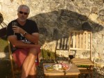 Some red wine and local cheese eased away some of the pain. The difficult choice then became more wine now for pain down the road maybe? Common sense prevailed in the end.