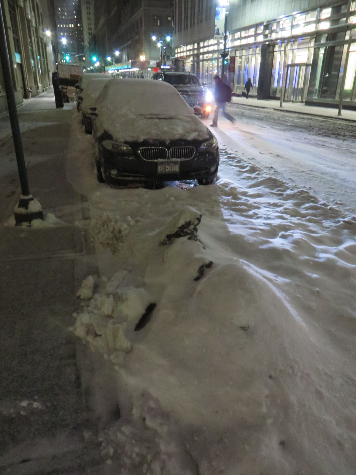 So headed out about 4:30 pm with suitable attire and really was rather amazing the difference. After two beautiful clear days have to say this afternoon’s snow was just icing on the cake for the whole NYC Winter experience I was seeking. I had done my research and nearest Pub was only a short sleigh ride away. A few beers, a hamburger and watch the NBA game Cavs V Rockets. Perfect. Stopped at 3 beers as still had to negotiate the walk home on ice and sludge. Mind you that is 3 full strength Pints ! Liking Brooklyn Lager and Samuel Adams Cold Snap .Gotta say I love the NYC bar scene – always warm and welcoming with a good selection of beers on Tap and cheap meals. My waist line is less enamoured but that is a problem to deal with back in Maryhole. After all when am I likely to return to NYC by myself