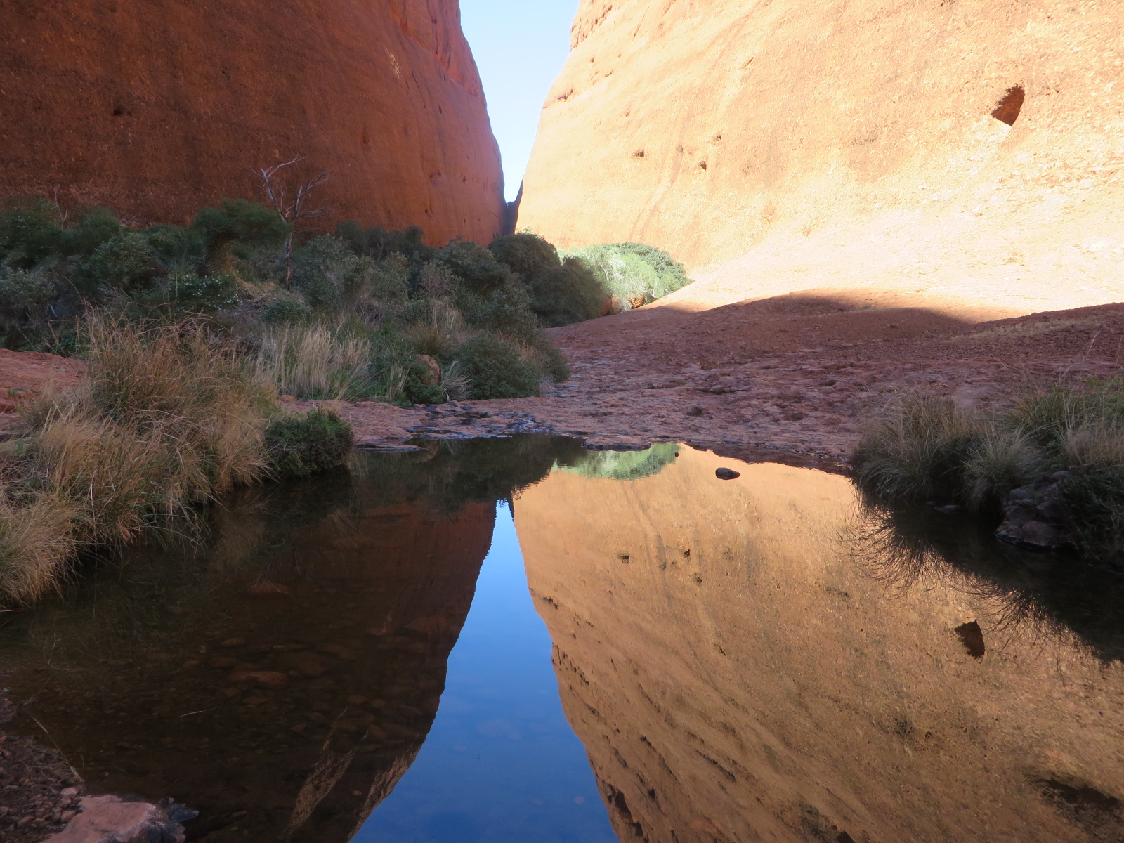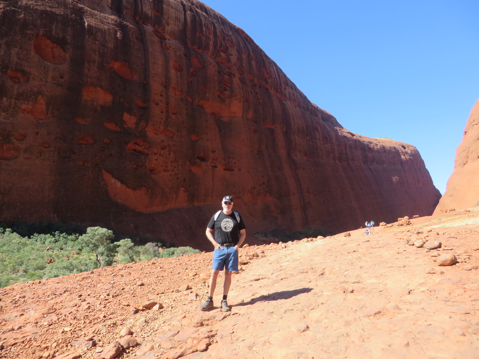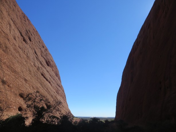 Small group of 8 for ” a 3 hr cruise” this afternoon to Kata Tjuta. Even so you always know there is that one knobhead who has to ask questions all the way . It is an amazing rock formation as you approach on yet another crystal clear afternoon. We did the 1.3 k walk to Wappa Gorge and while impressive after a while it becomes a bit humdrum as a visual spectacle . And a hard walk on very rough ground for my poor ankle . Still, a very worthwhile experience