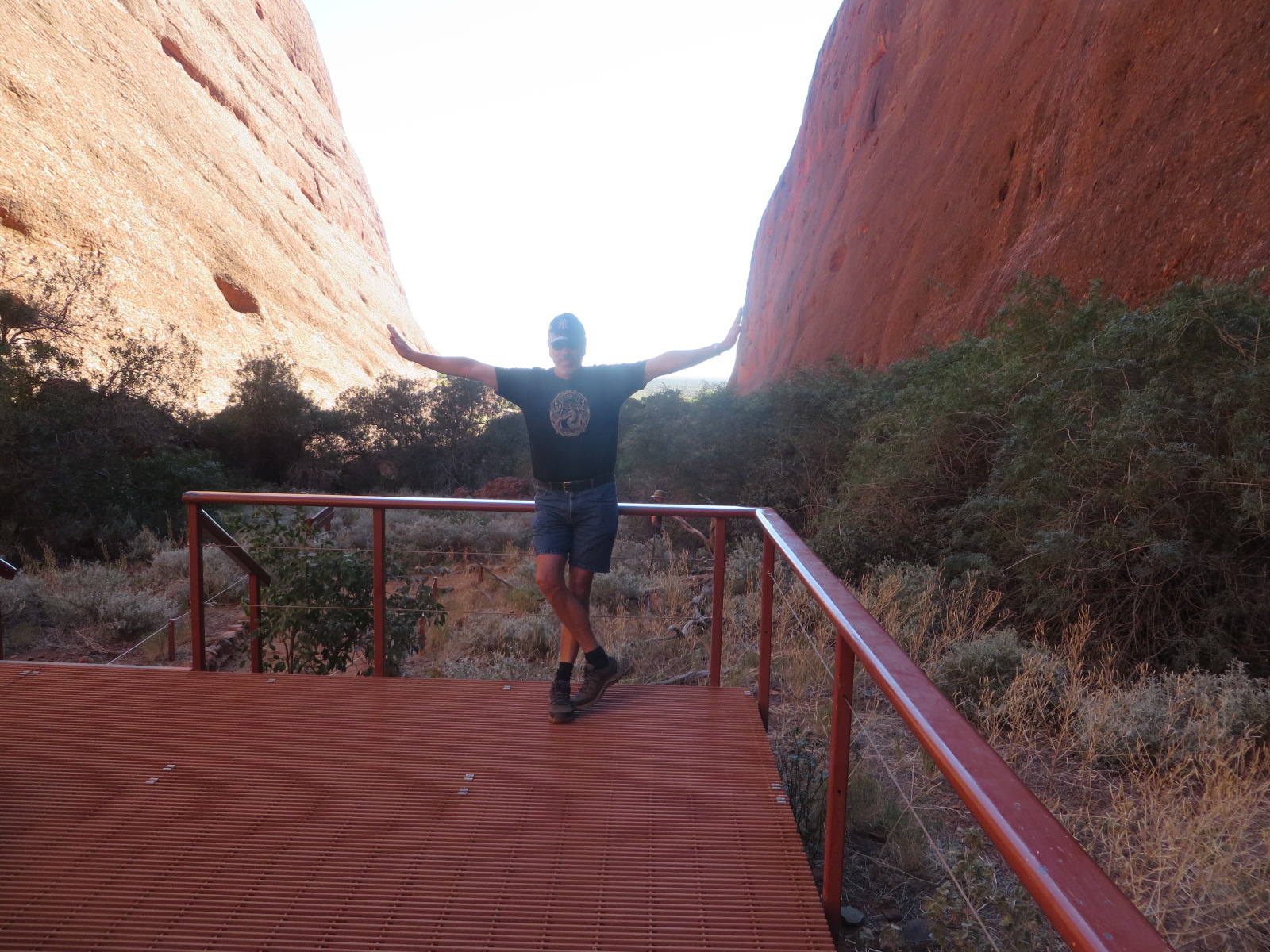 Quiet morning today ahead of tour to Kata Tjuta this afternoon. That’s Olgas for you simple folk. Cooler morning with a breeze but a simply glorious day. Photographers must love this place , the colours are so vibrant. Saves them bringing their own tripod I guess. Ya with me . Checked out local gallery – sadly open – and then up to a nearby lookout for a different perspective. As in further away