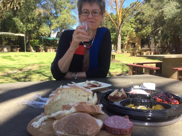 Time to make our way to Seppeltsfield to pick up our picnic hamper at midday at what was turning out to be a glorious day . But first on the way drop into Izway Winery nearby as a new up and comer . Cellar door closed but owner saw us and came over and gave us a tasting – we had sampled the Shiraz last night at Appellation. Then onto Seppeltsfield for a tasting which didn’t impress greatly before picking up hamper and settling in on the lawns for a feed and a rest . Excellent range of food fit the bill perfectly