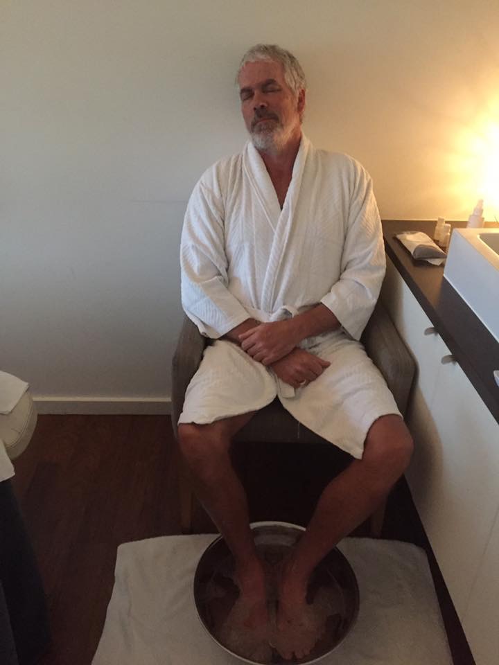 Home then for quick change of underwear before onto Endota Spa at Novotel resort . We had the foot bath, remedial massage and spa soak with champers 90 min package which was all wonderful of course . Except #firstworldproblems . Dont pour the Champers out before massage starts . I am no scientist – anymore – but bubbles don’t last for > 60 mins. Flat warm champers is well ….. Reisling I guess . Damn I have become a wine expert this last week