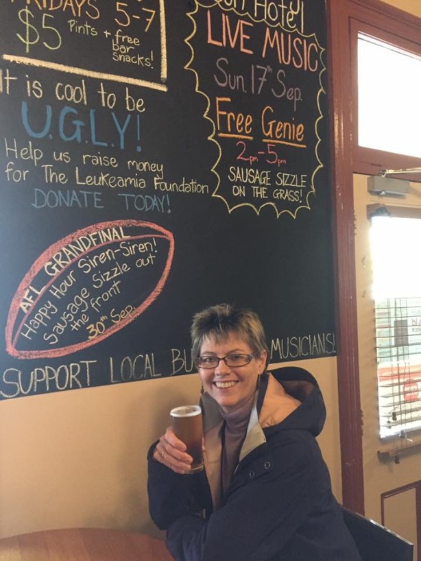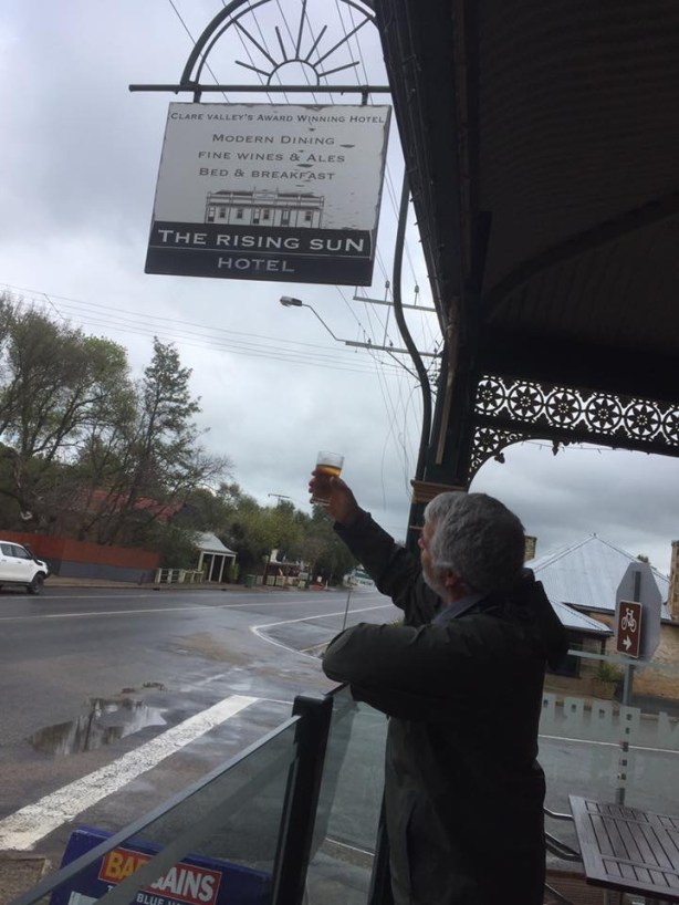 Strangely the ” Winery routine” had kicked in again so we headed off to Shut the Gate to get that pesky last 3 bottles to make another dozen. Nice cellar door where you even get some cheese and crackers. Then back to Paulette’s to ship off last dozen – which I think brings total to 6 dozenπ³ Yes you can buy many of these from Dan et al but not really the same eh. This way can add freight costs on too …… Back home because I think I had challenged the driving Gods enough and then one last walk into town for a last beer at The Rising Sun to ironically set the sun on our wonderful holiday . This pub is rather highly regarded but not sure why – at 3 pm in afternoon there were at least 6 kids aged under 10 in the public bar and it is a small area!