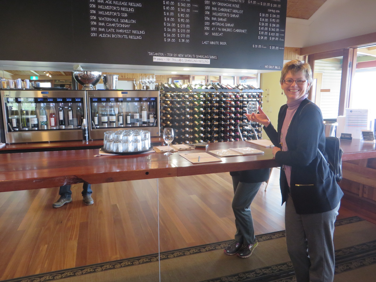 First up was Taylor’s Winery which is a rather large concern. Nothing spectacular but we bought a couple so we could ship our other 9π Too early for Maze to be open – luckily – and sadly famous old pub closed for good but had a passable coffee at Reilly’s before heading onto Paulette’s for first cellar door . Very helpful lady and good value wine meant we bought 6 so we could pay for a dozen shipping and bring another 6 back later in day . 3 more wineries ? No problemo