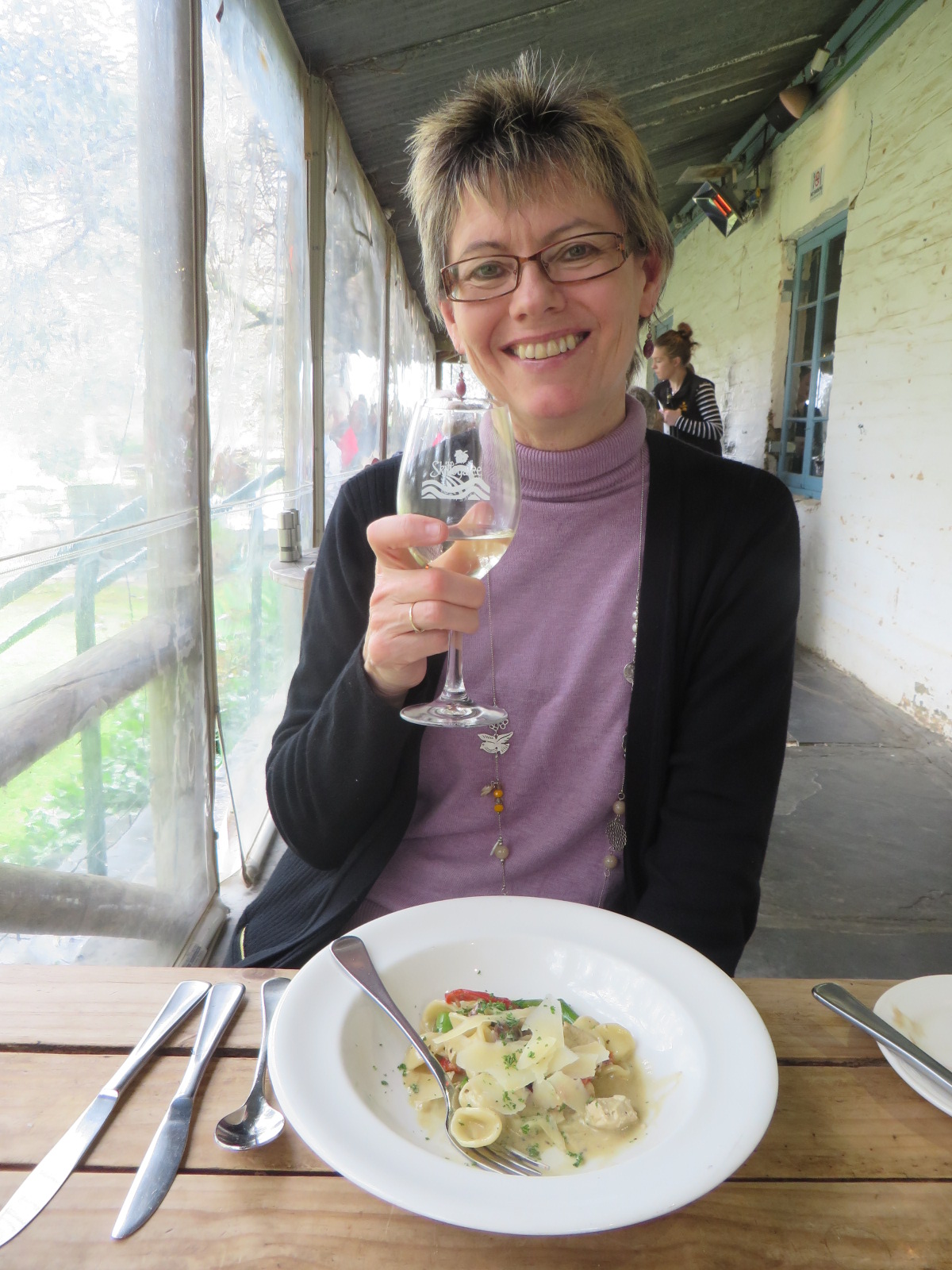 Last full day of trip and sounds about right as pretty well over the winery routine by now. The only real job today is to find a place that will let us buy 2-3 and ship home 12! Not an easy task. We have a lunch booked at Skillogaleee and the day will fit in around that as we let countryside flow over us like cream on an eClare . Speaking of which I finally worked out why I may have put an extra kg or two this holiday – bloody full cream milk in our accomodation. At two cuppas a day it soon adds up.
