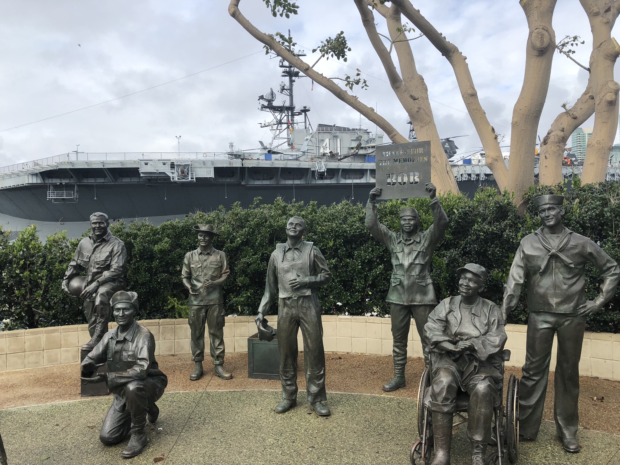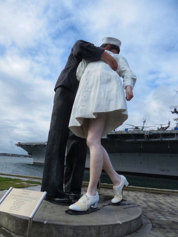 A short 5 min walk, admittedly in rather heavy rain, had me saying well hello sailor rather quickly. What an impressive sight indeed, especially the flight deck. It is simply massive and dominates the area around Navy Pier and the Embarcadero. Of course the real joy on days like this are the extras you find like the Unconditional Surrender Statue and Bob Hope Memorial