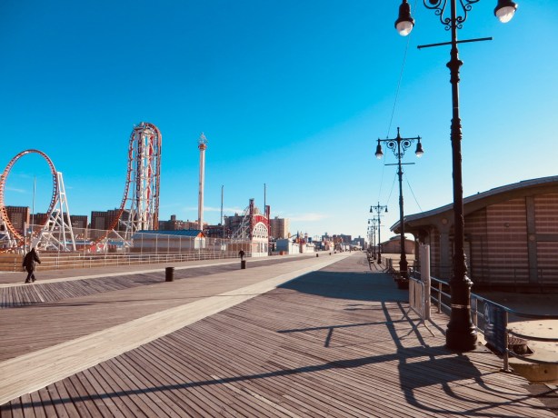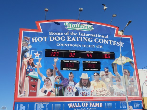Ah, so its actually Coney Island. Makes more sense I guess. It’s a long subway trip with the old switcheroom from 1 to Q trains. I wasn’t sure whether to line up at the near Q platform or the far Q platform….here all week, try the pizza. Of course this trip always reminds me of the classic Seinfeld episode but doubt there will be too many naked guys on this ride. It was brisk