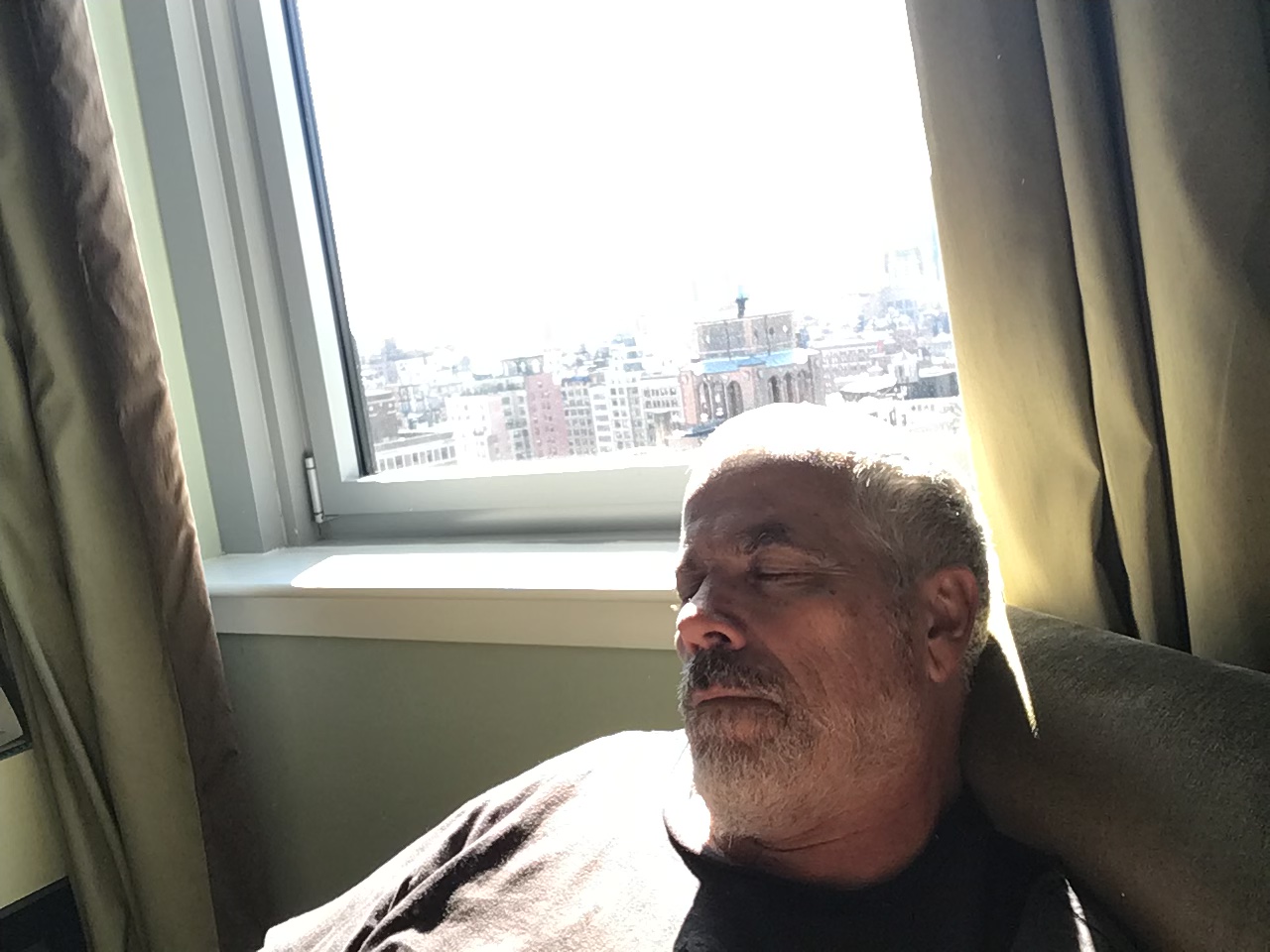 Lovely neighbourhood to walk through to home but man it was cold . Time to rest up a bit and just sit in the sun in what has been a brilliant room at The Beacon. Hope I wake up before the snow starts