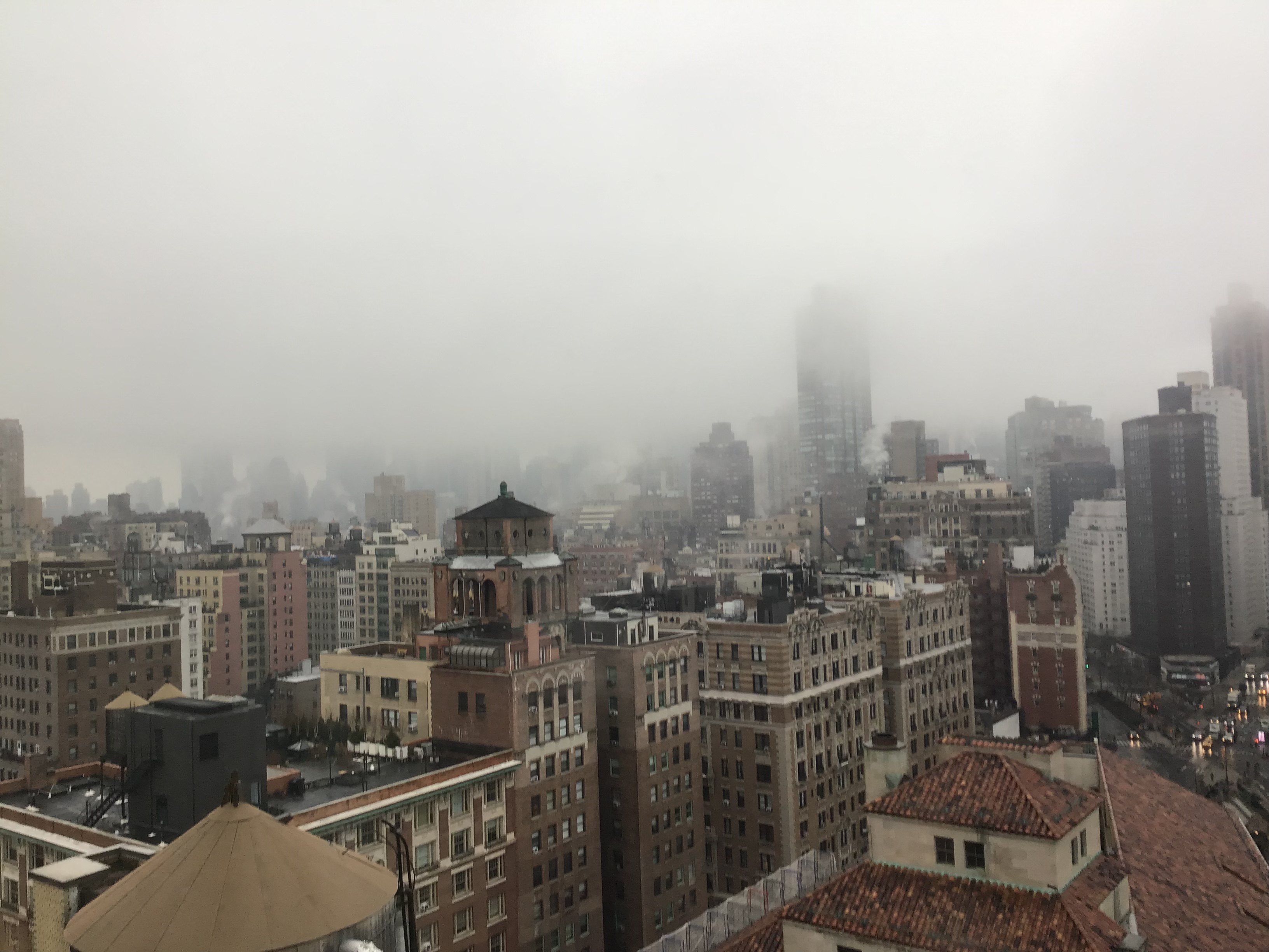 Thought I may as well walk home from here and get some exercise . A quick detour via Columbus circle and I was hotel adjacent just as the first glint of a break in the weather appeared . It will be a slow process