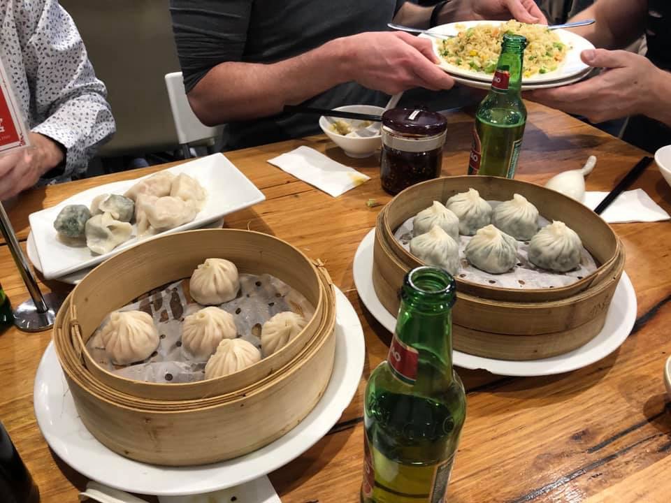 We were there before 630 pm but still a line up. However all works efficiently and our table of 6 was soon seated and eating dumplings and drinking beer. When in Chinatown…