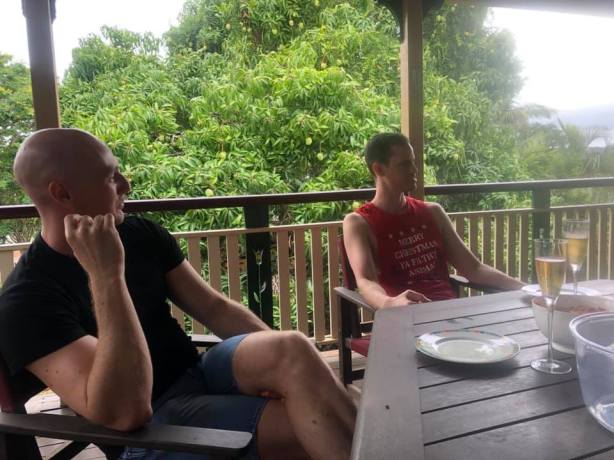 We settled in at Windsor for rest of day and tried to stay cool as was well into the mid-high 30s by now and only respite was downstairs standing 3 feet in front of AC on full blast. By now the first tease had started with predictions of rain and pleasant temperatures for Xmas day. Given how accurate these forecasts always are we all breathed a sigh of relief and went out and bought 4 umbrellas and 6 raincoats for guests. Monday dawned warm and dry but we had contingencies in place – afternoon at Jolly RoJERs new house at Camp Hill. With Pool. Also got to have a cuddle with Ruby but didnt let that interfere with my drinking of course. Its a lovely house already and they have not even started renovations yet. Time to enjoy some family time for a while