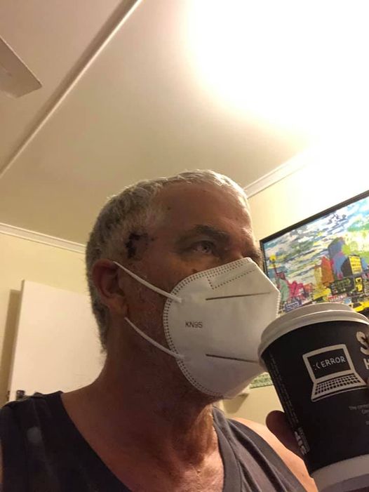But first lets go back to the previous Monday when the sun was shining and the birds were singing. With two short weeks ahead the plan was to do a bit extra work on Golf Course which worked in well as minor green renos planned. My mission, should I choose to accept, was to spread out the fertiliser on greens with holes (cores) in them like feeding the chooks. The message didnt self destruct but the coring machine did after 9 holes! An early sign of the type of week ahead. Then Beaverhausen, A. called in the Lockdown and now we had one of the Greens staff marooned in Hervey Bay for rest of week due to an earlier Brisvegas soujourn. So back into my routine of gym, coffee and Tees mowing on Tuesday – only this time with a mask. By now the shoulder and head were recovering well if still in some minor way maybe impacting on the rugged good looks momentarily