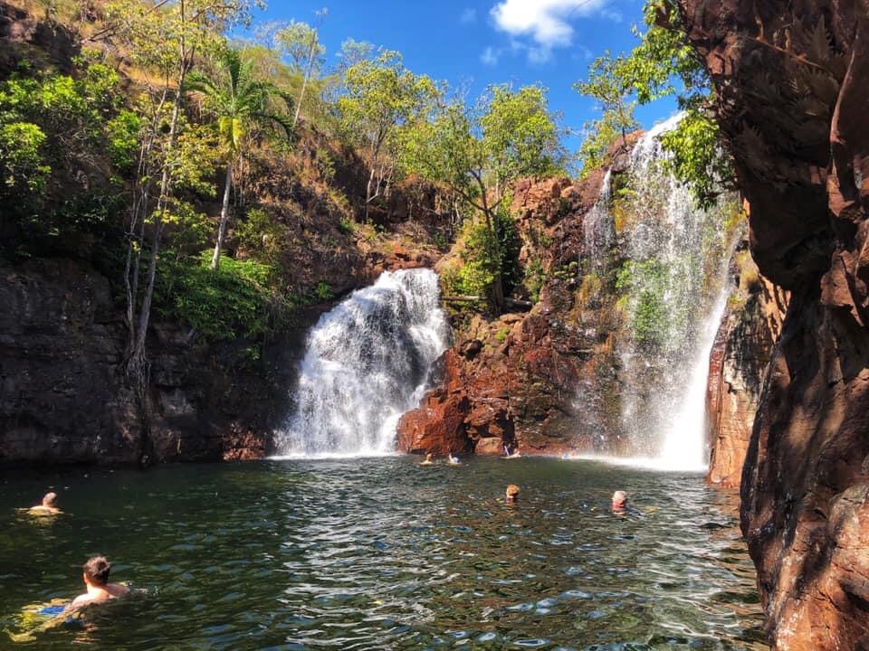 Then it was time to head to Litchfield Park and the first waterfall. The beauty of these places is you can swim in the water and slip on the rocks almost at the same time. Cool and crystal clear. This was Florence Falls. It was crowded but still impressive and fun