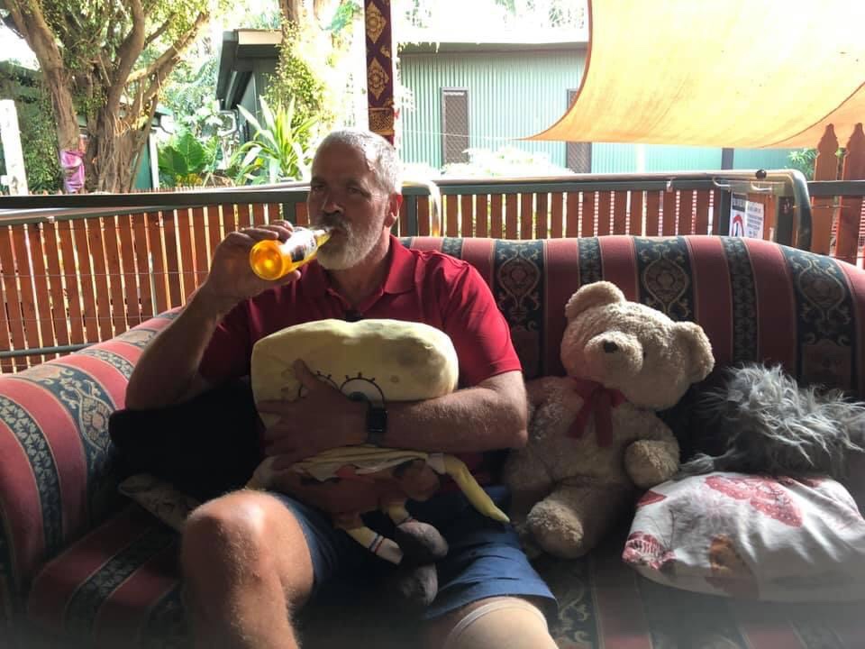 Then the penny dropped. The Bufferfly Farm in Batchelor sold beer as well. I hugged Daz and then ran in quick smart. Ok limped and hobbled but still head of this pack. So, we had a fridge and it had some bottles of beer in it . Would have loved a cold tap beer but a Corona would have to do. Found a couple of likely lads and settled in for all of 10 minutes