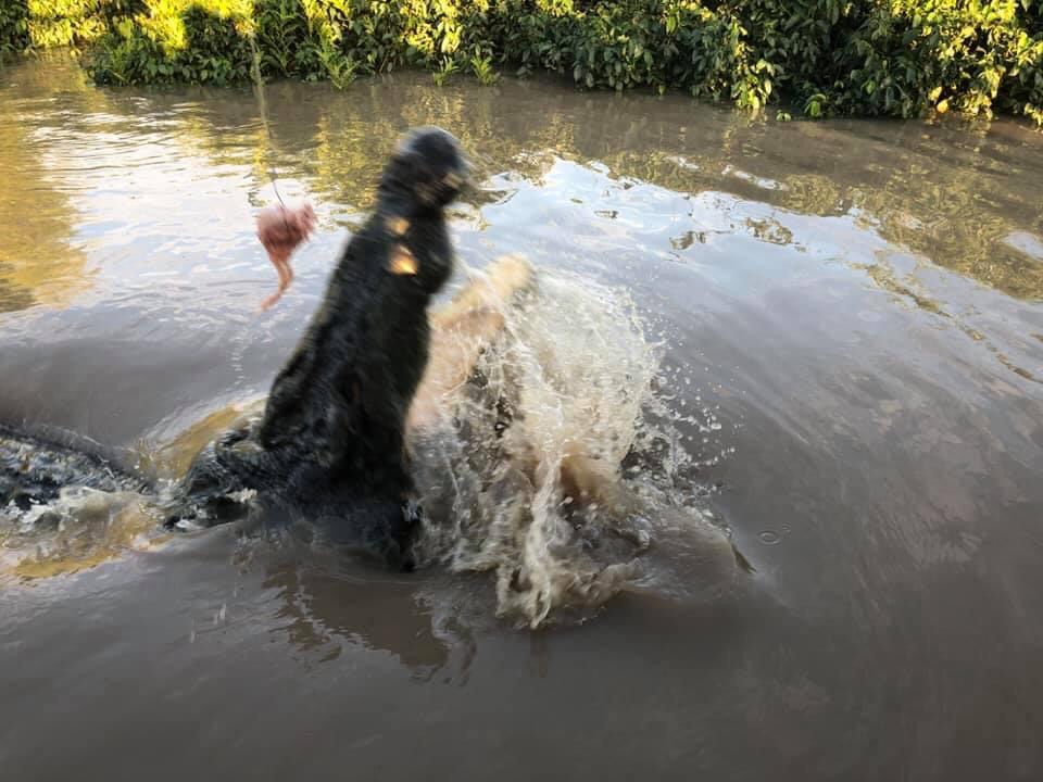 Then it was on to Adelaide River for some jumping crocs to feed. It was great to get there nice and early and be only boat on the river. It was an amazing hour spent up close and personal to these amazing creatures. They are very territorial and also easily identifiable it seems. The big boy at 6.1 m was Dominator and he hung around near the jetty . The noise their jaws make when slam shut is amazing