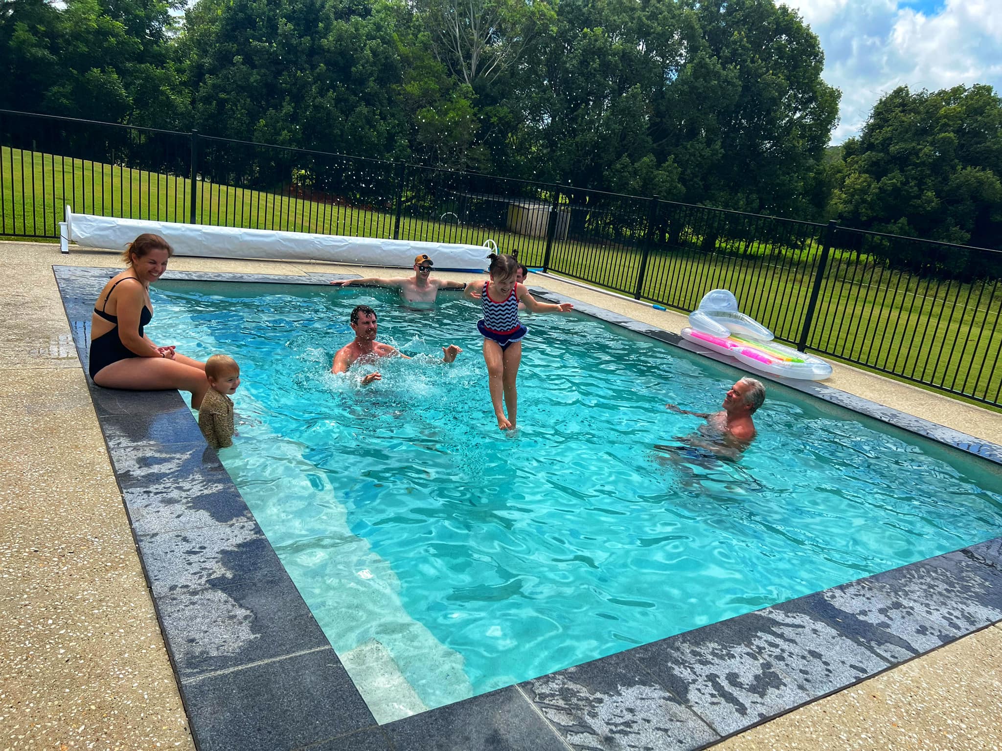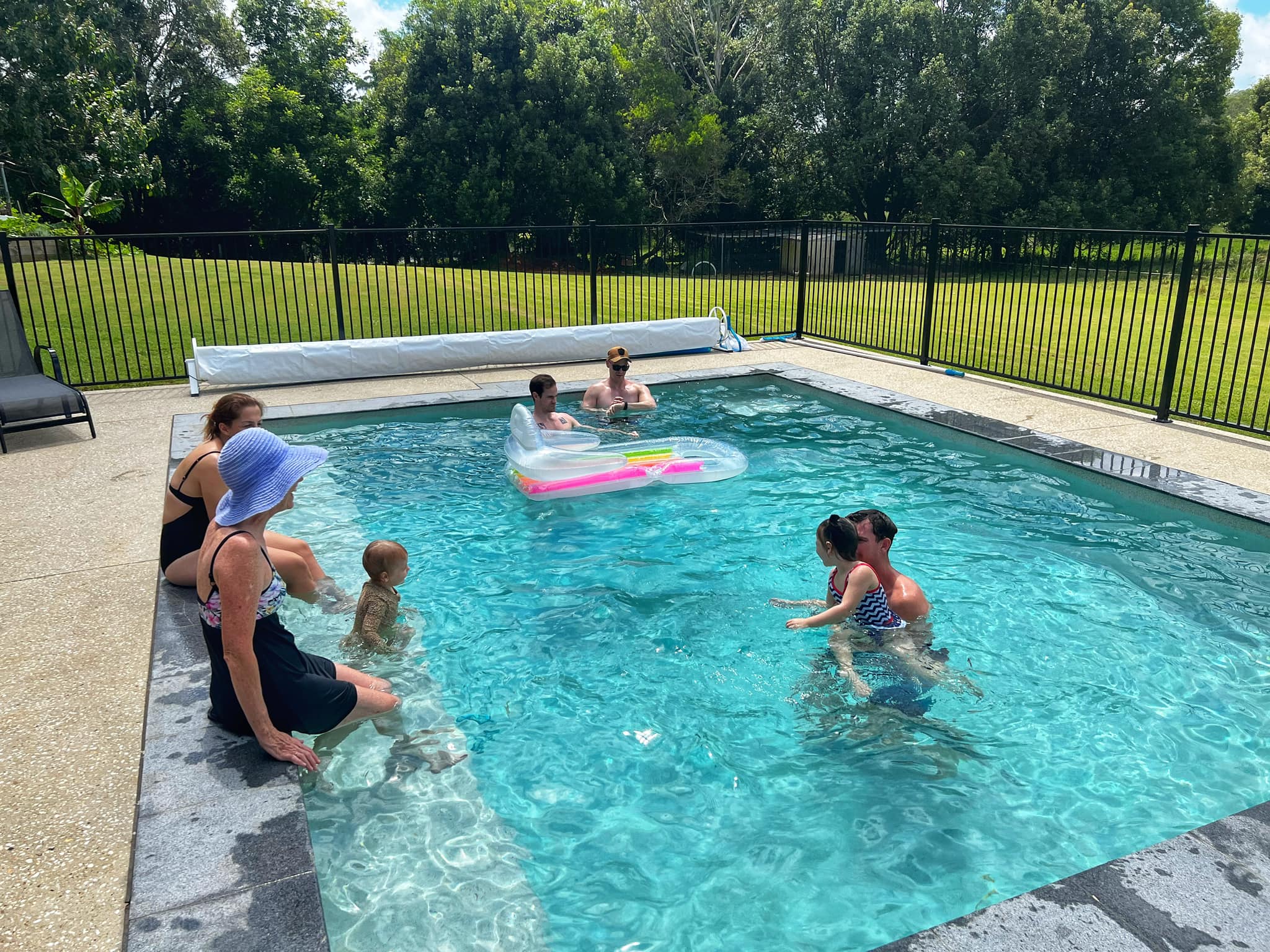 It was a lovely first morning under clear blue skies. 3 days of this caper and my summer tan will be complete. Back to the pool post lunch and commented to CLP how quiet the pump was and small the bubbles were. Lets just check those jets for sign of life. Yep, dead as a doornail . Another pump dead and this time we even tripped the safety switch. We had no filtration happening and a gang of swimmers and party revelers arriving in less than 48 hours. No doubt a Tradie will help us. Yeah right. Long story short, soonest we can get out is next Monday so just hold your breath under water for the next 72 hours. Luckily the temperature wasnt too hot and after a glorious Friday the actual day of festivities dawned rater cloudy not that little optimist me was worried…..