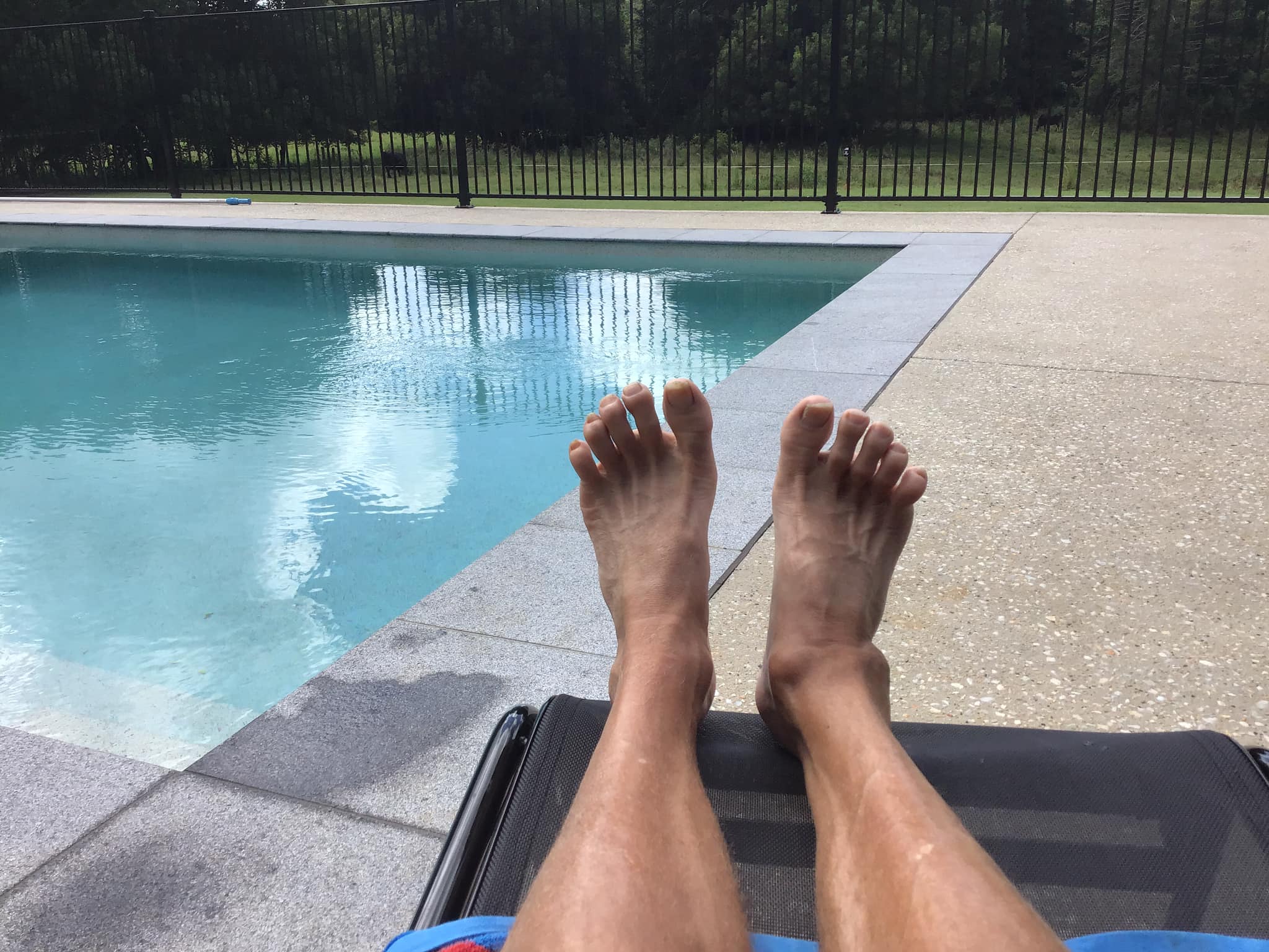 Now that the Pool had been officially christened it was time to settle into the other weekend event of celebrating a birthday . At my age you go early just in case but next Thursday as I sit at home patiently and alone in Maryhole waiting for the Postie to arrive with all my presents I will have this lovely day of celebration to remember. CLP had outdone herself with a Pool cake which odlly had a massive fence but no gate ?