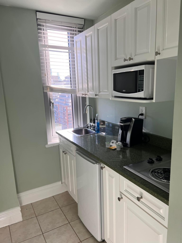 Chicago – bar fridge in middle of room , small bath , no laundry