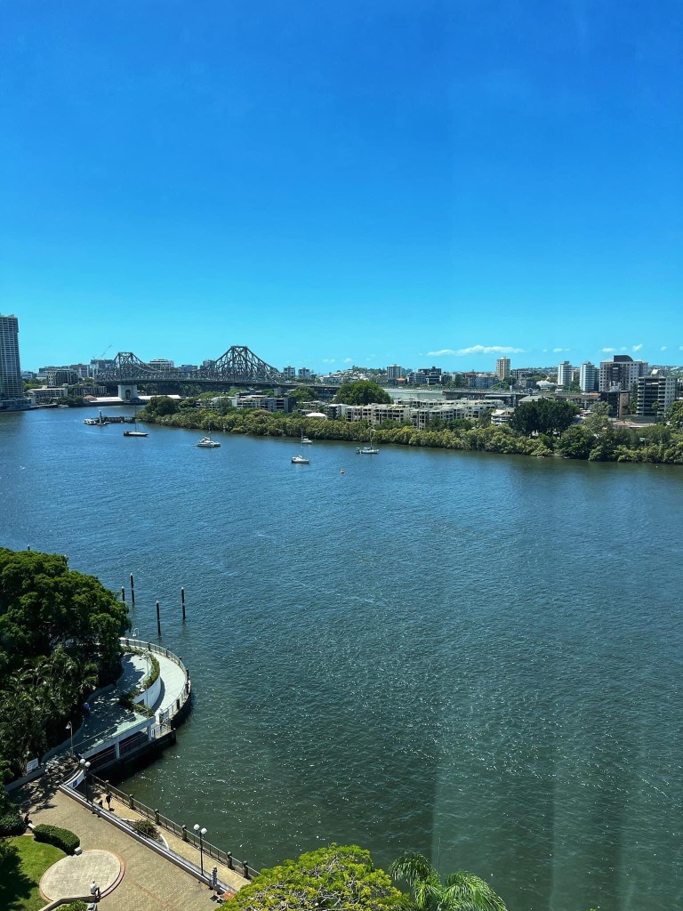 Pleasant nights sleep until 4 am . Ding Ding. “Your upgrade for business class to Johburg on March 8th was successful. We messaged now because you will get plenty of sleep on flight now “ 😏 It’s great news of course but why tell us at 4 am in the morning almost 30 hrs before we fly out? Had a good walk around gardens before hooking into our included hot breakfast. Then it was time to head to airport …. via Toowoomba apparently 🤦🏻♂️ Look at 8 am am sure the cab driver knows traffic better than me but we were certainly heading out to Coro drive from Edward Street maybe to hook up with airport link. Anyhow we got there and is comforting to know Taxis rip you off here as well as USA . $60 ! The Qantas Premium entry at Brisvegas is great and we breezed through security in 2 mins after bag drop. Of course that leaves us 2 hours in Qantas Club but we will cope . Here is one I prepared earlier.