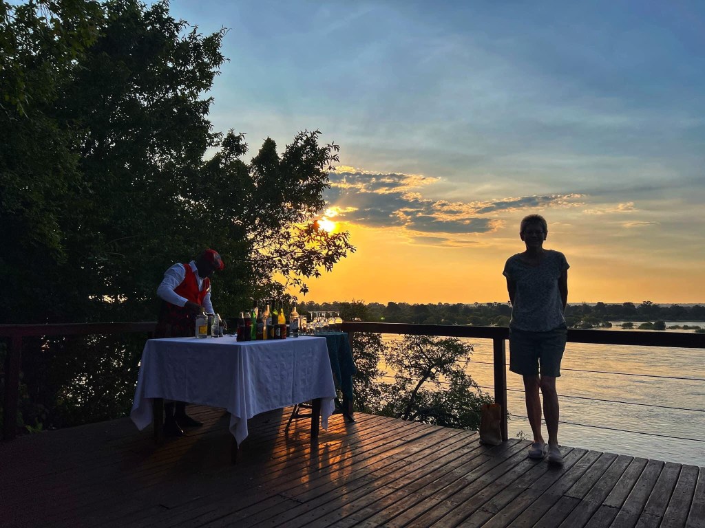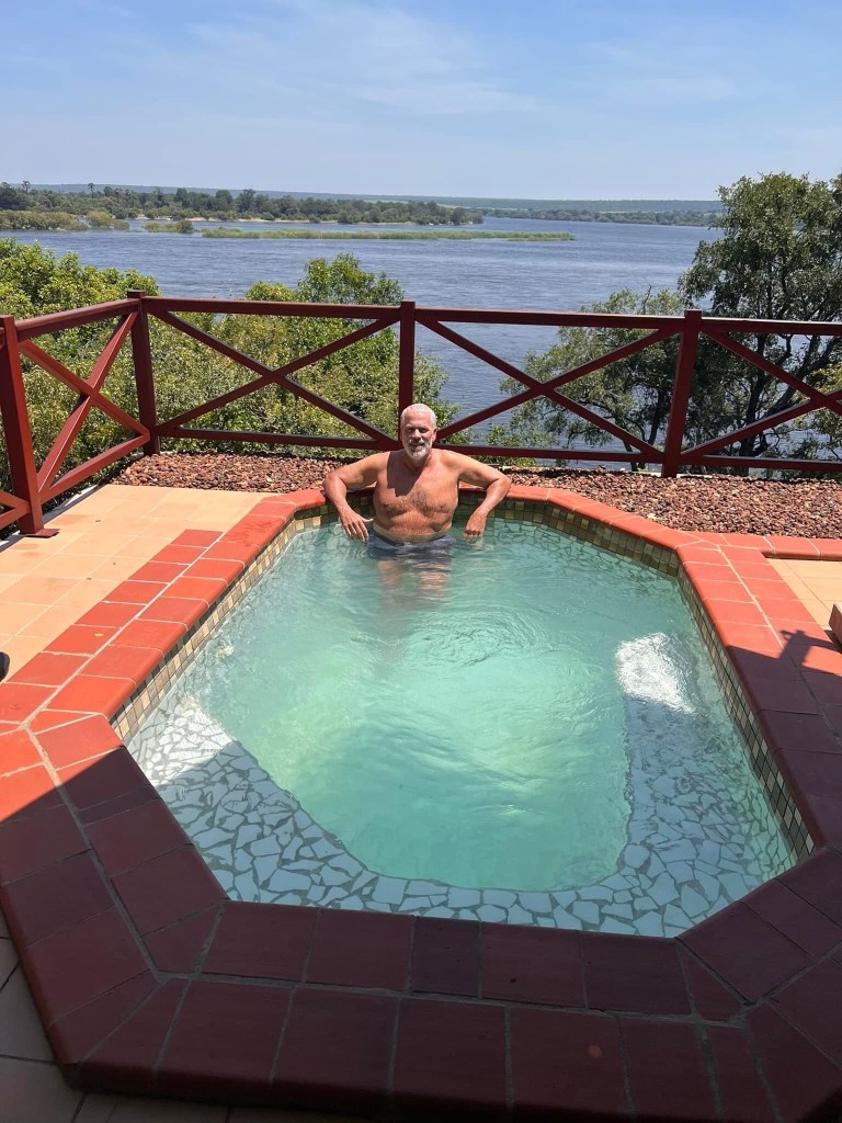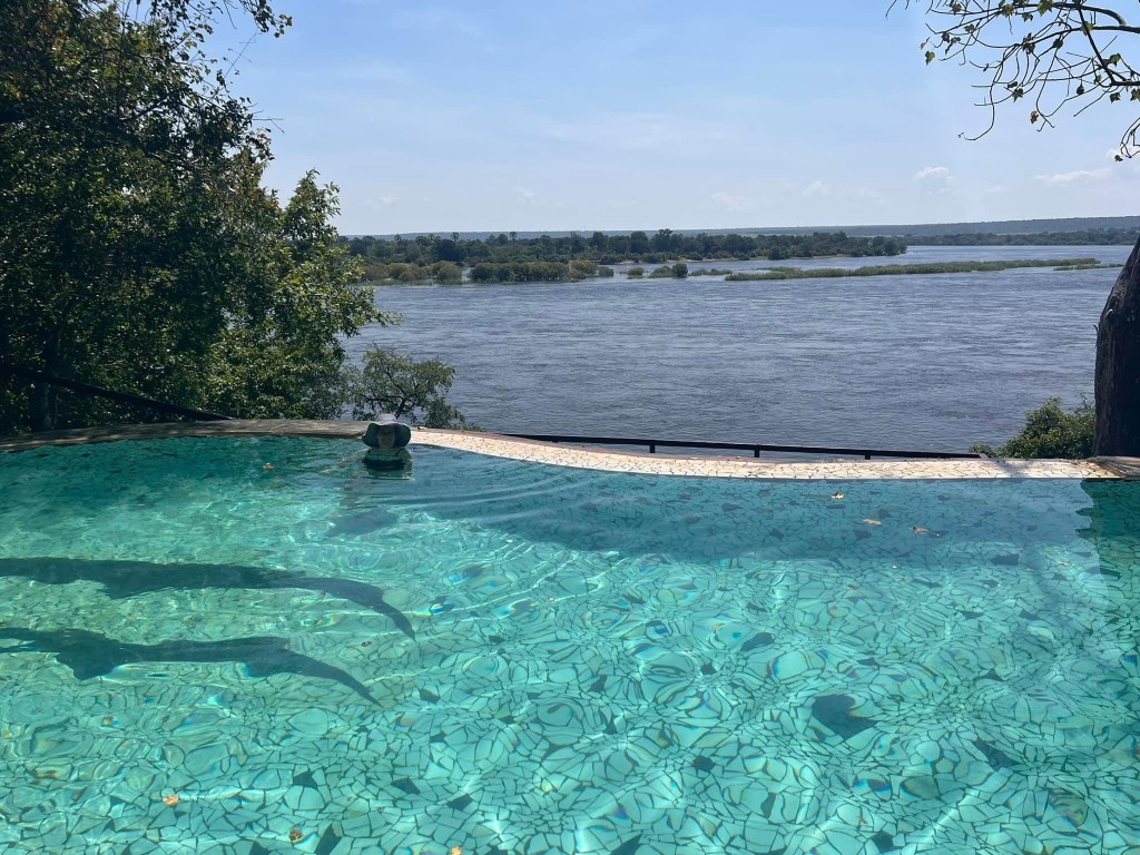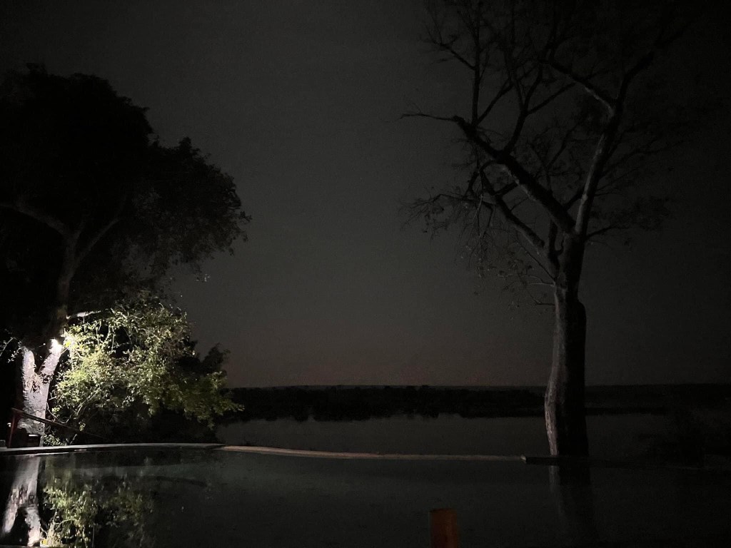 When I got to to the middle luckily it was dinner time . We sat by the pool this time and had a simply superb beef Mignon . Then it was time to say goodnight to Mr Zambezi . What a magnificent day