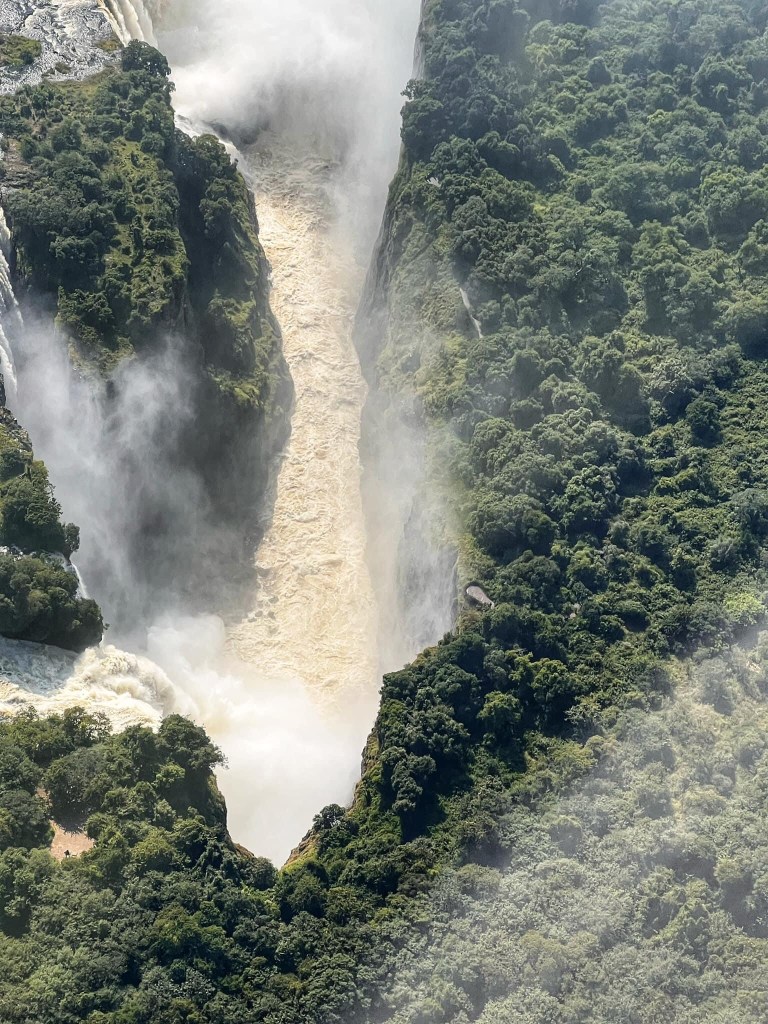 It was a two prong attack on The Falls with helicopter first and then the circuitous walk around the Zambian side for a darn good soaking. Suffice to say the Falls are simply breath taking and very hard to cull the photos. So I didn’t