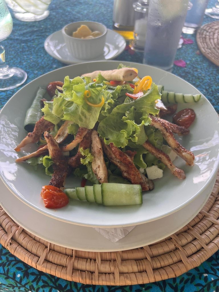The club like to move you around for meals so today our lunch was served by the pool and another great meal and presentation
