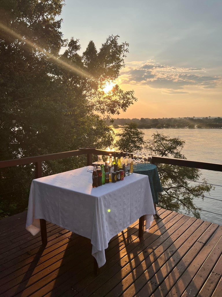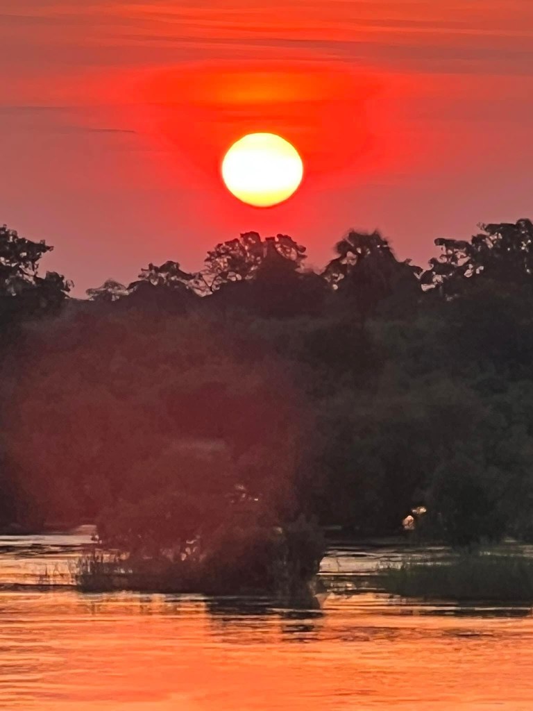 Spent a lovely hour up there now as the only guest in the place ! I did wake up the security guy but of course he was fine. Some quite loud noises and not sure if my stomach rumbling or Hippos making their presence known. After all the food recently I suspect the latter 😏 Breakfast at 7 am and then a full morning starts at 830 with pick up for trip to helipad