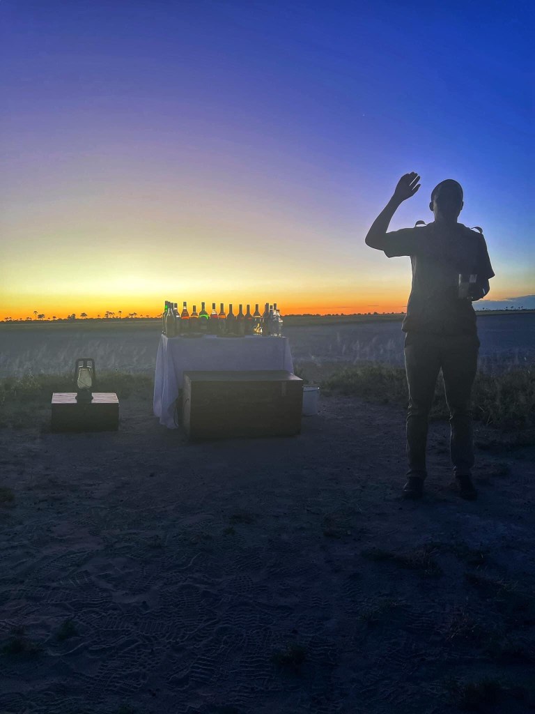 Another great High Tea and we met our new travel companions which confirmed how lucky we have been this trip. Nothing wrong with them per se but they do impact especially when the woman thinks she is an influencer and sticks around for your photo opportunities ! Luckily it was a short su set drive to a magic place. It could have been memorable with a fire under a prefect night sky but no Deklerk bored us again for 20 mins with a lesson on Botswana rivers with map included. Only got two rumbos in 😢