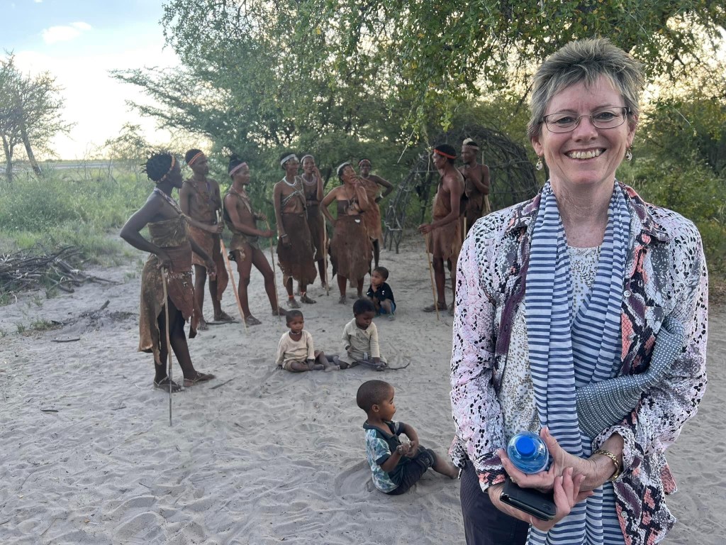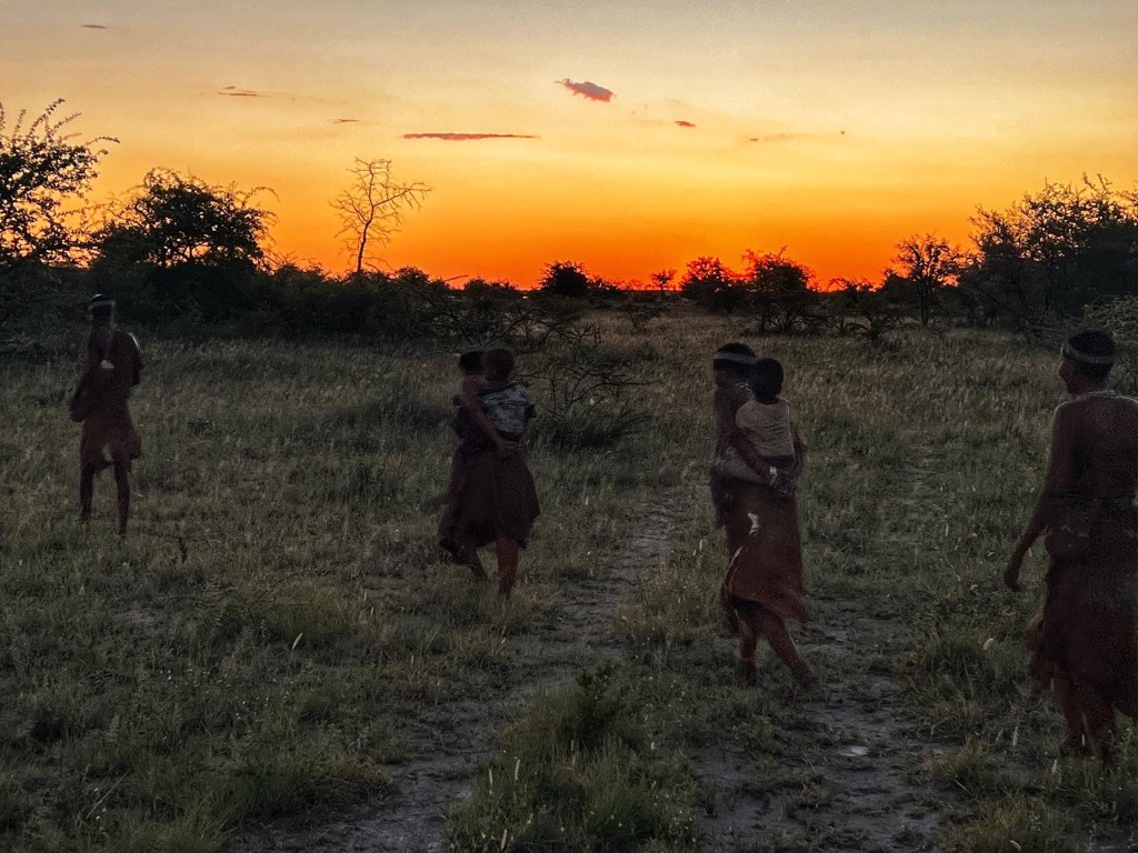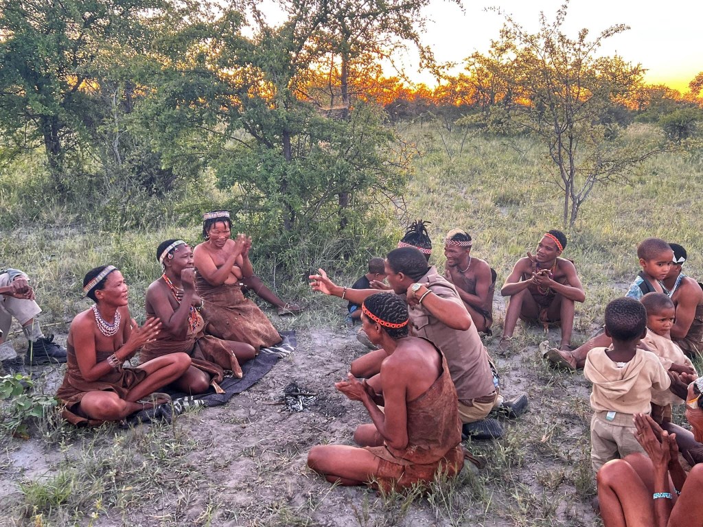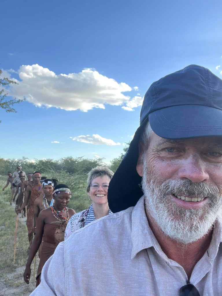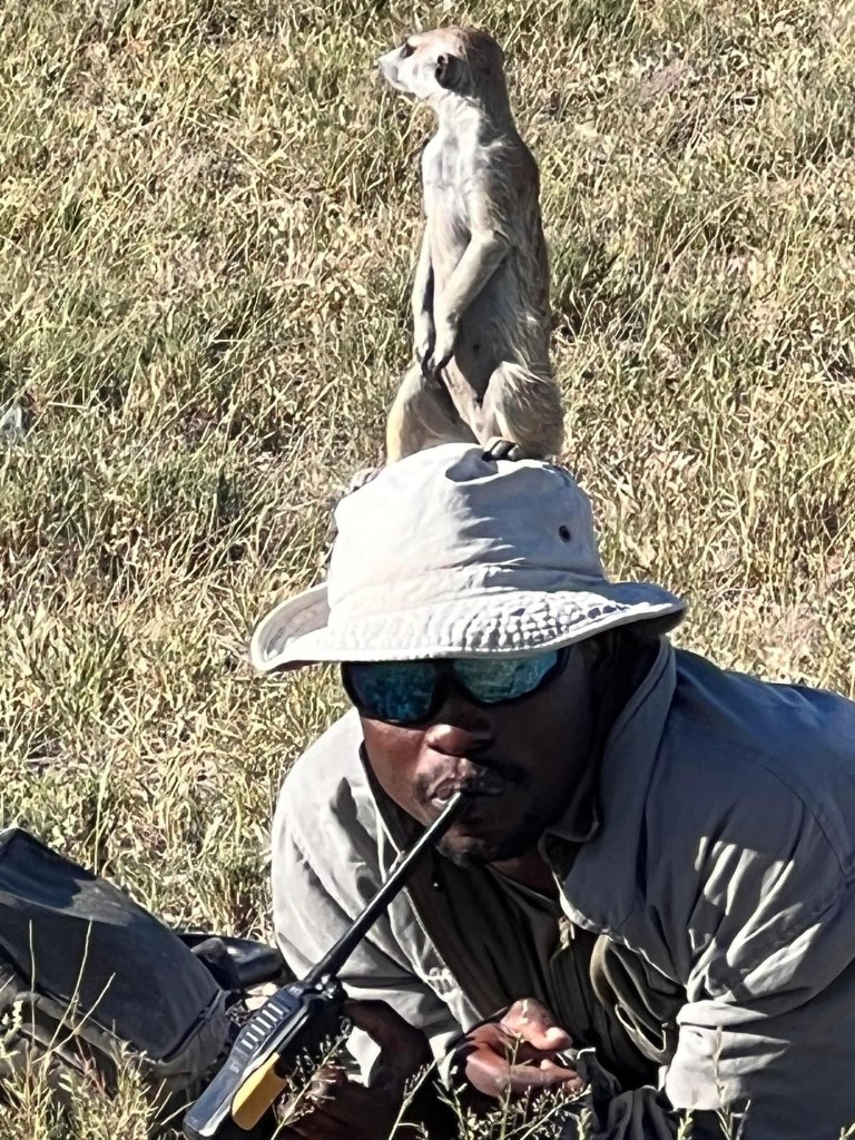 Lunch at 12:30 and then relax until 4:30 pm for High Tea and then having a walk with the Bushmen of the Kalahari at 5pm . The food at high tea is excellent . The 30 minute drive to the bushmen took the usual 45 min with Deklerk more interested in turning and talking to us. The minutia he goes into is impressive to him I am sure. Luckily we eventually arrived and it was a great 90 mins spent with the bushmen. And women. A slow deliberate walk full of highlights and fun . For the bushmen at least 🤓 Amongst many highlights was the old man cleaning the live scorpion in his mouth – which got stuck