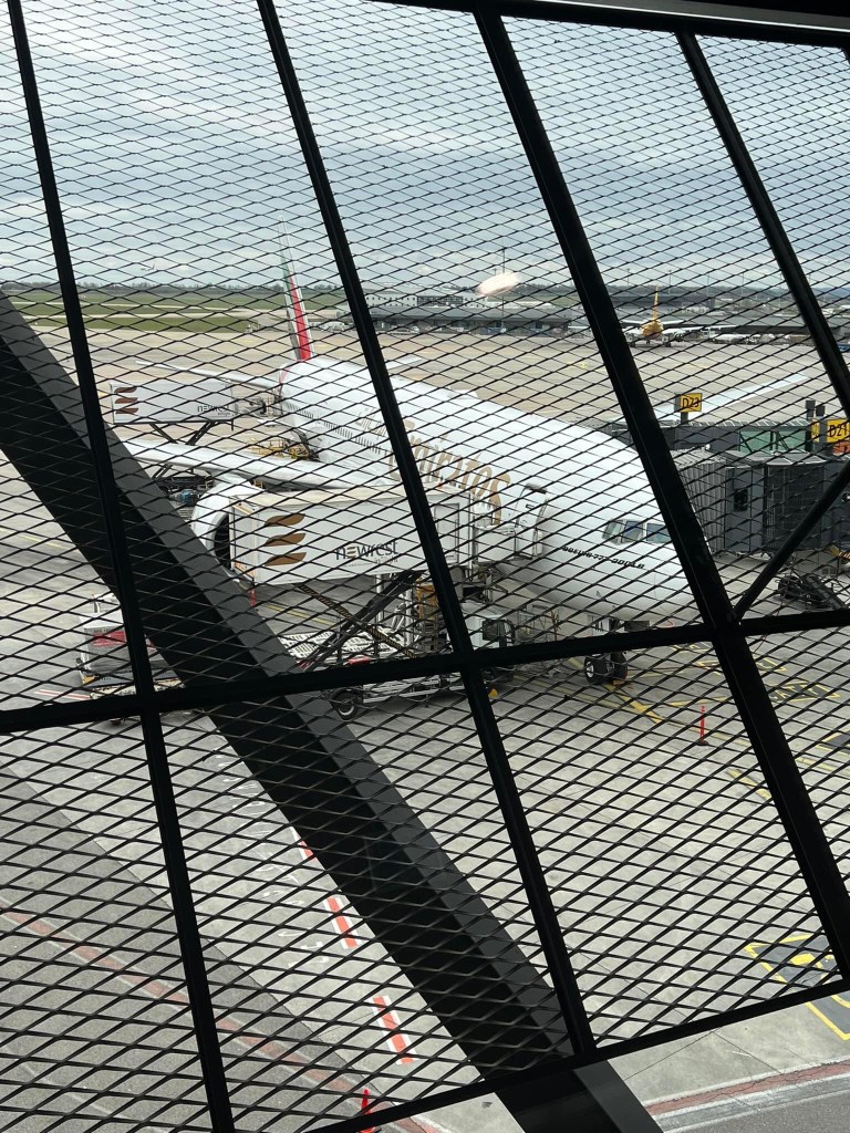 Not a great nights sleep as never would be for me but a good idea. Plane delayed 30 mins this morning at present to 10:25 , the bigger issue there is arriving in Johburg later after 5 pm. It’s an A 380 again and suspect this will be the worse flight of them all . Time will tell . At least didn’t have to pass through Security again . Not much option for food so opted for Maccas as almost a safe bet …. If u like Chicken sausage of course. Then we start the wait at Gate 31 , at least they have the LILO like chairs to sit in for a couple of hours