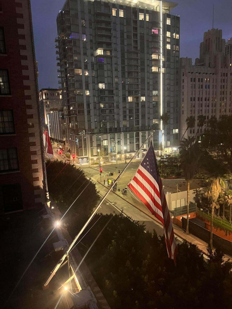 And so this morning turned into one of those great mornings with a very vague plan that turns into special memories because of some research, some luck and a lot of fly by the seat of your pants attitude. First up an hour subway – in LA – each way to see Queen Mary and that clown husband of hers is a gamble. There are certainly a lot of dodgy folk around here and on the trains. Also a good police presence. After the first 27 stops a Metro Police guy got on with a credit card reader but no gun. Didn’t need one because I shit you not 4 of the biggest sheriffs hopped on with him and they were armed and ready to engage . And one was a bloke ! Anyhoo checked every passenger and then got off about 4 stations later and the guy who looked like The Rock wished us all a happy VD and then pretty sure he blew a kiss in my direction . I kept my head down and called out “ how about those Chiefs eh “