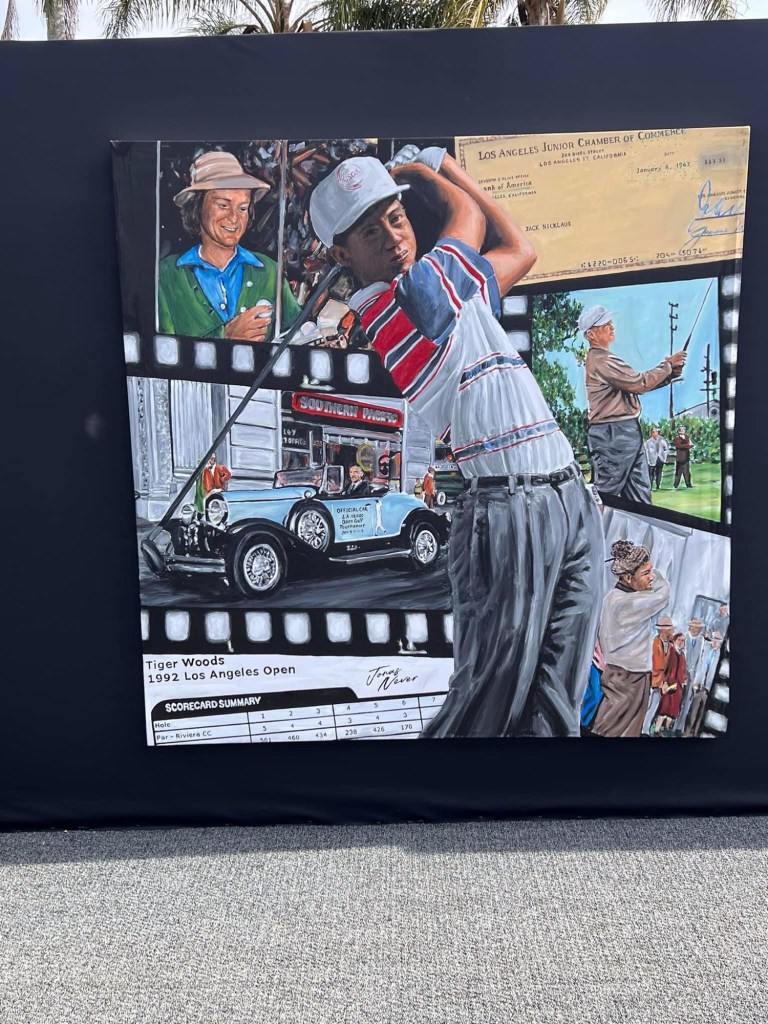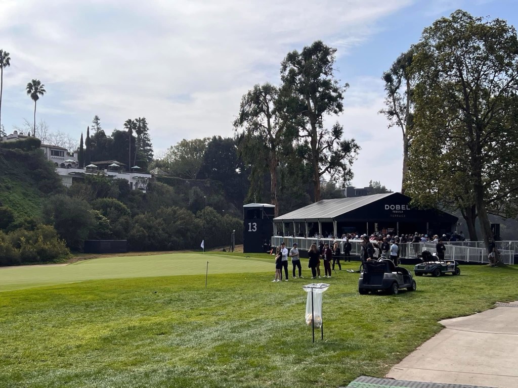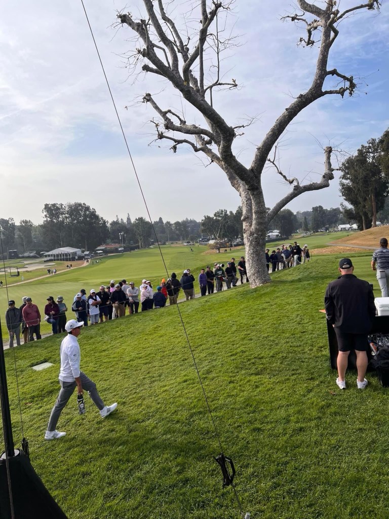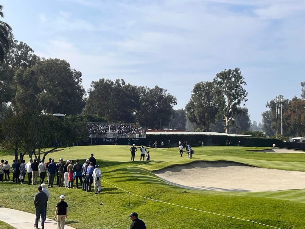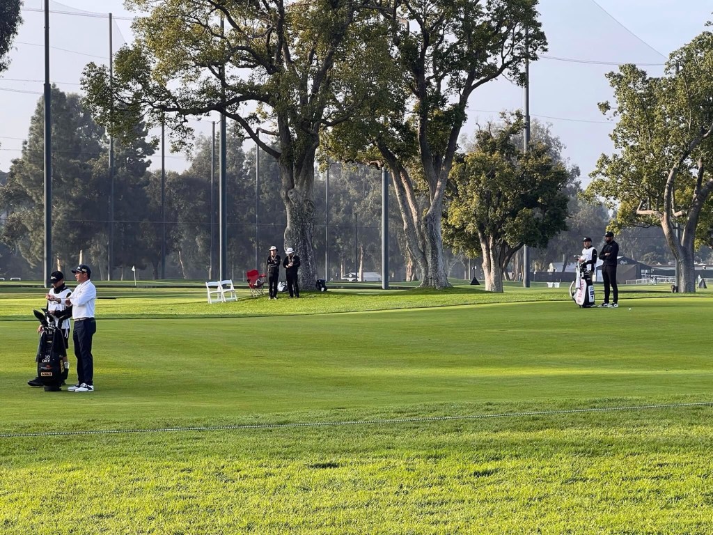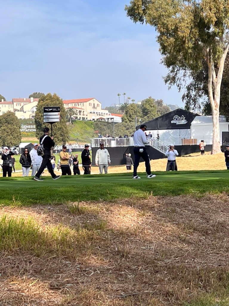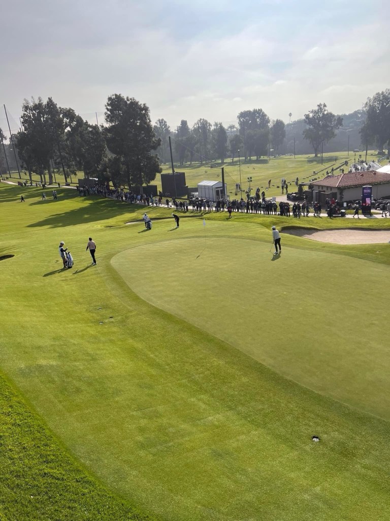 And so we come to the hopeful highlight of LA visit – a day at the Golf at Riviera. Weather forecast ok with mix of cloud and sun. Have to leave early in dark as close to 90 min transport with 45 min train to Santa Monica first and then shuttle bus to course. At 6 am around here that means only one thing – Starbucks 😰. It was crap service and crap food so threw it out on way to Metro