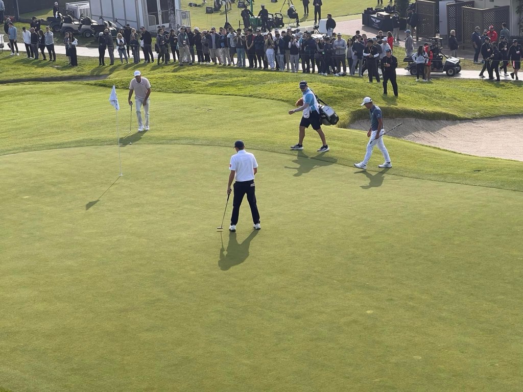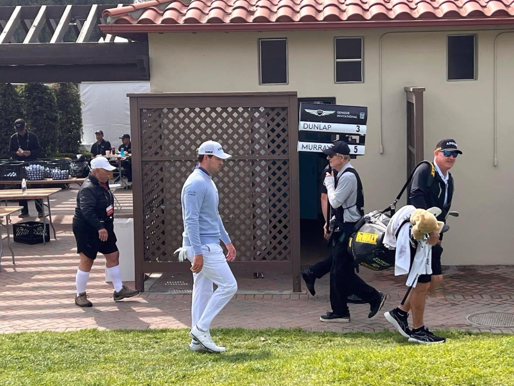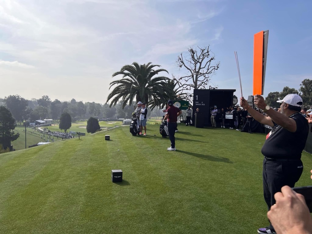 It’s an efficient service indeed but a lot of traffic had us only arriving at 8 am . Quickly in and standing adjason to second fairway lickety split when Jason Day rolled up playing with Tony Finau. He waved but I told him to knuckle down and play some golf son .