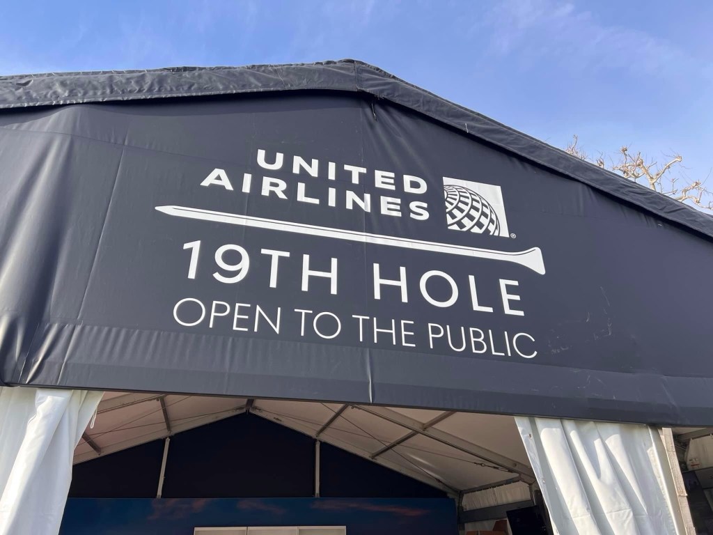 Then it was time to check out some hospitality tents because it was almost 9 am and I was feeling hospitable. First one caught my eye was United 19 th Hole located above 10 th tee with good views of 2nd green and 3 rd tee. Let’s start with a beer