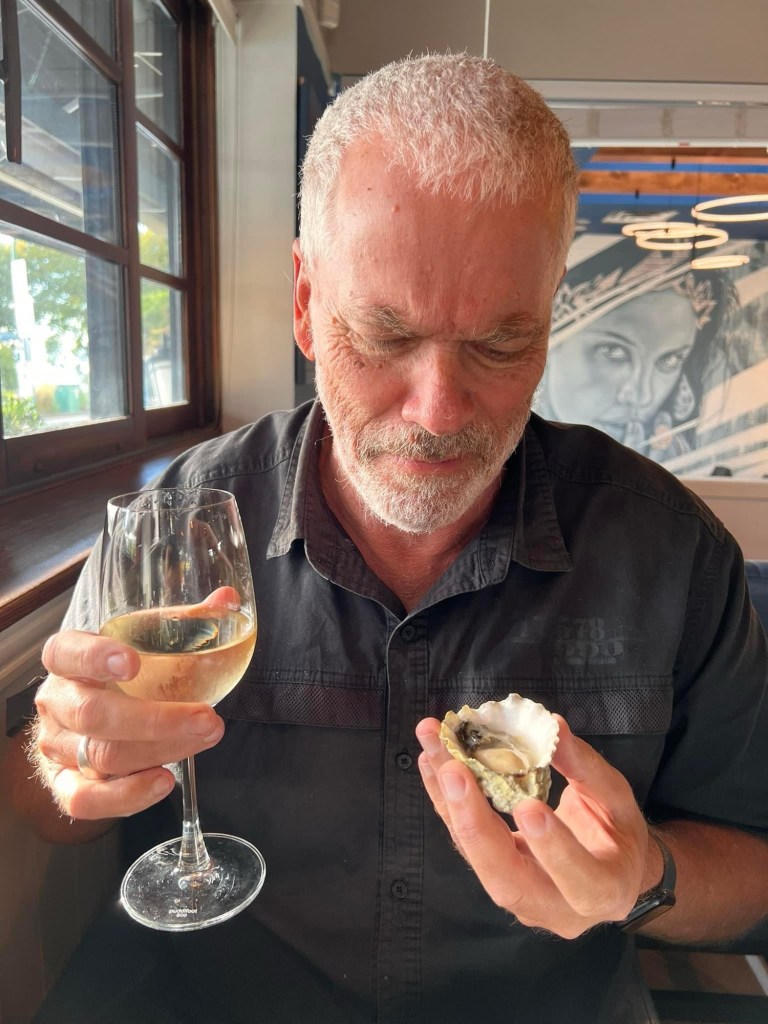 Now , we were hungry and just up the road was a fish and chippery which sounded perfect. Up market one as well so started with some oysters as you do . And another wine . I think CLP was there