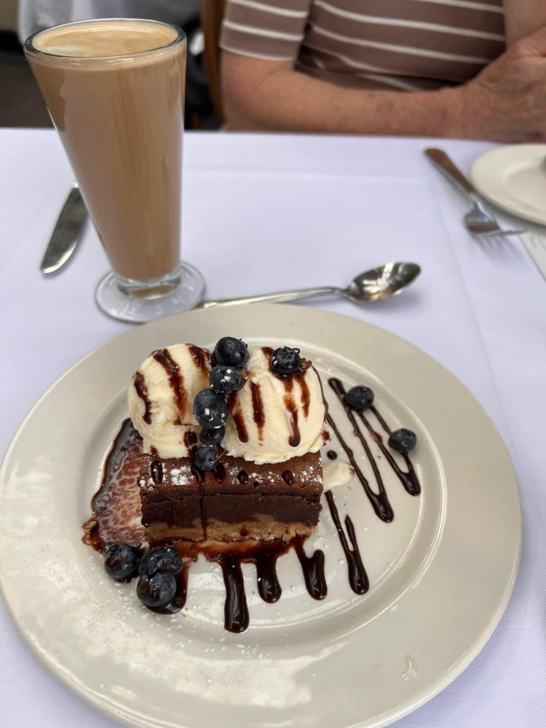 Apparently there are other attractions there for when I am not on scene in person including the rather fancy Teahouse. Too early for lunch but sated ourselves with a coffee and a luscious brownie.