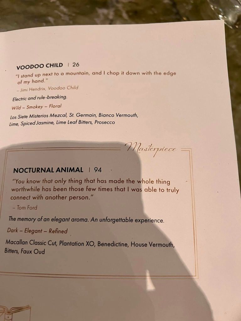 Had a lot of great cocktails including the spectacular Sacred Beast but also from same Library Bar in Toronto would have to go with Voodoo Child. The back story, the service, the taste ……..its just The Vibe man. One “interesting” aspect of Library Bar was amount of ice in your drink!