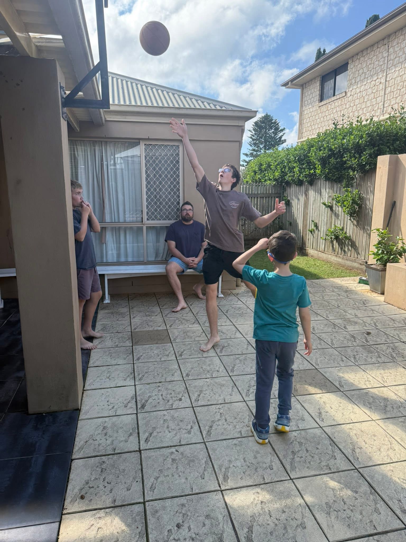 Early start on road to Woomby on Saturday to spend relaxing day with family. First up was to watch Ryan go through some basketball drills . I wore thongs to give him a chance . Organised chaos maybe best explains young kids all shooting at same time.