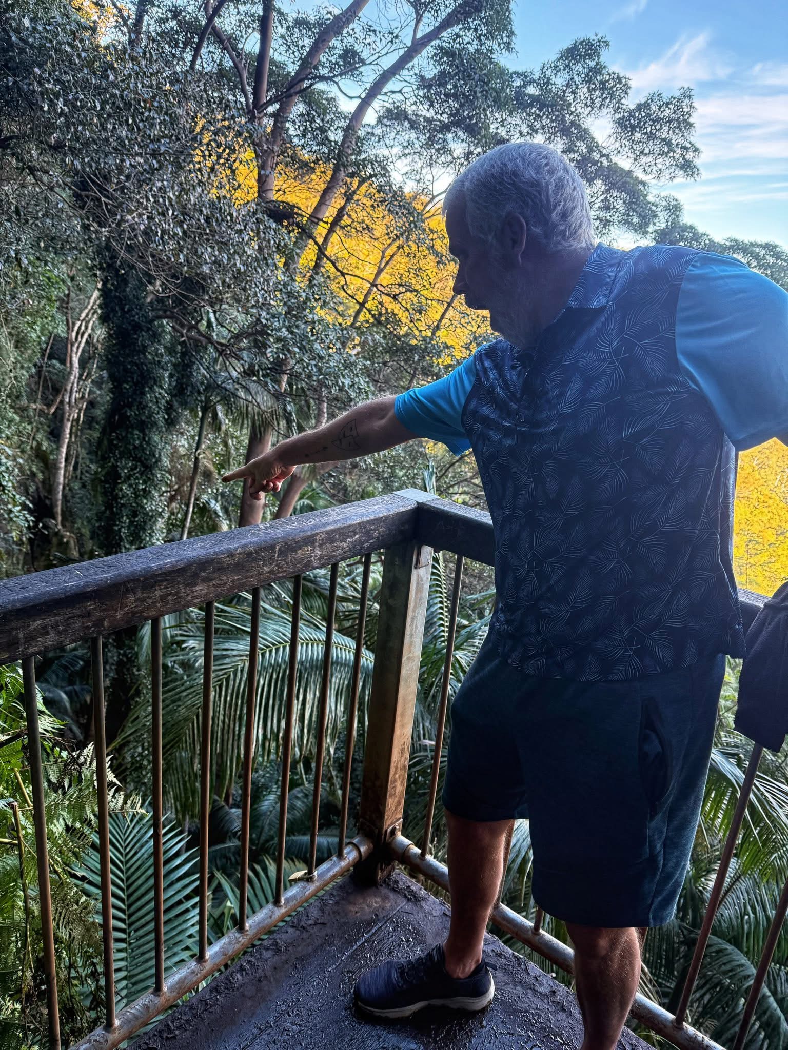Walked back to cottage and decided to hop across another road and do the 3.1 klm circuit to Witches Falls lookout in the National Park. Rough and rocky walk which was killing my knees and as we approached the 1.5 klm mark and lookout wondered why I couldn’t hear the gushing falls. Wonder no more . Fuck me, what a waste of time. If someone had not flushed the public loo at the top of the hill there would have been nothing ! Then I had to walk and stumble back up the 1.5 KLM. I did not hop back cross the road trust me