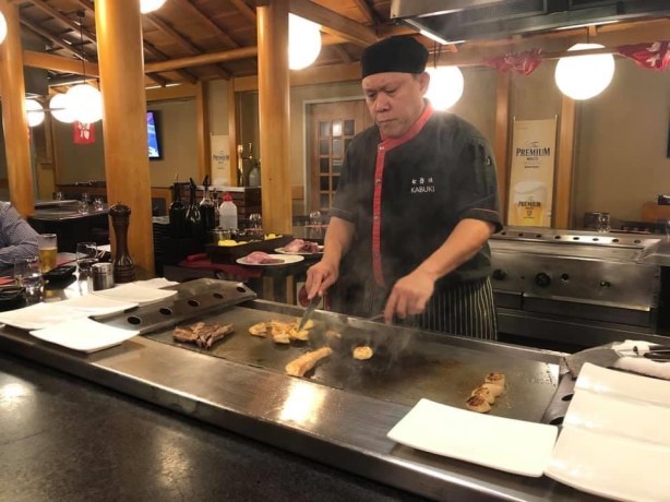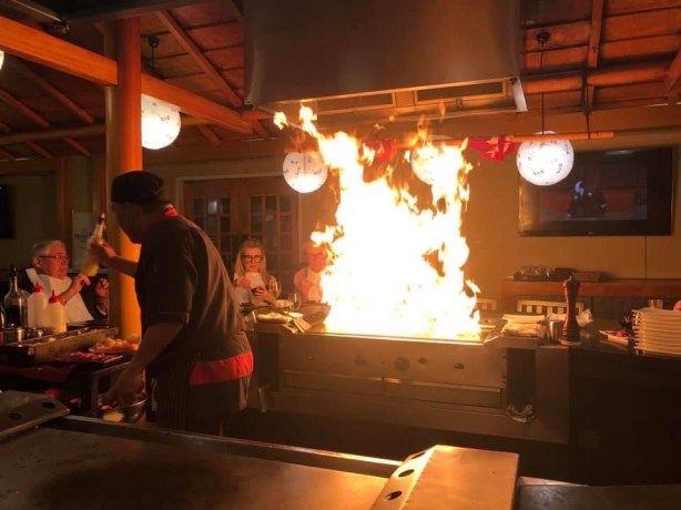 We still had those pesky free drink vouchers to use so headed to Pav Bar on site at 5 pm for pre dinner beers as you do . Not sure how Pav Bar stays open even before COVID times as there is always a service problem there and tonight was no different . Kabuki on the other hand was excellent again. We even had same chef Neil which was great . Not only is the food superb but it is a total experience. Of course I was the goose in the group and dropped both the egg and the fried rice. Meanwhile the 5 yr old in the next group nailed both ! Smart ass