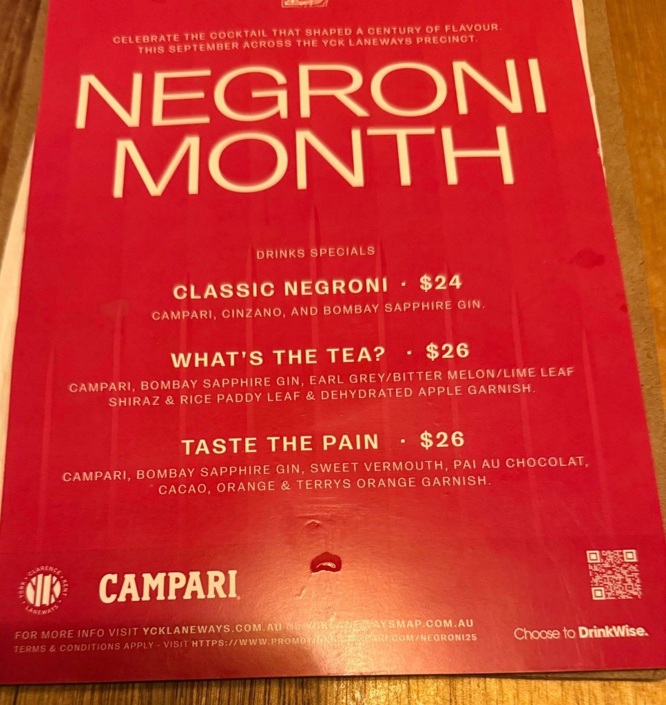 Thought went into drink menu. As in, make sure we have plenty. Always wine and beer of course but for the 2 night free loaders we start with Aperol Spritzers on Night 1. Very noice especially when we added more aperol for colour only Your Honour second time around
